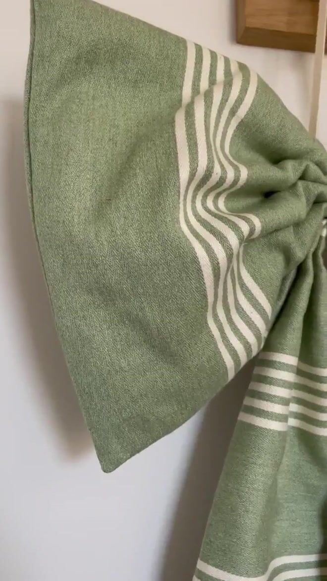 A beautiful oversized bow handmade from an eye-catching sage green and ivory Ian Mankin Oxford stripe cotton fabric.