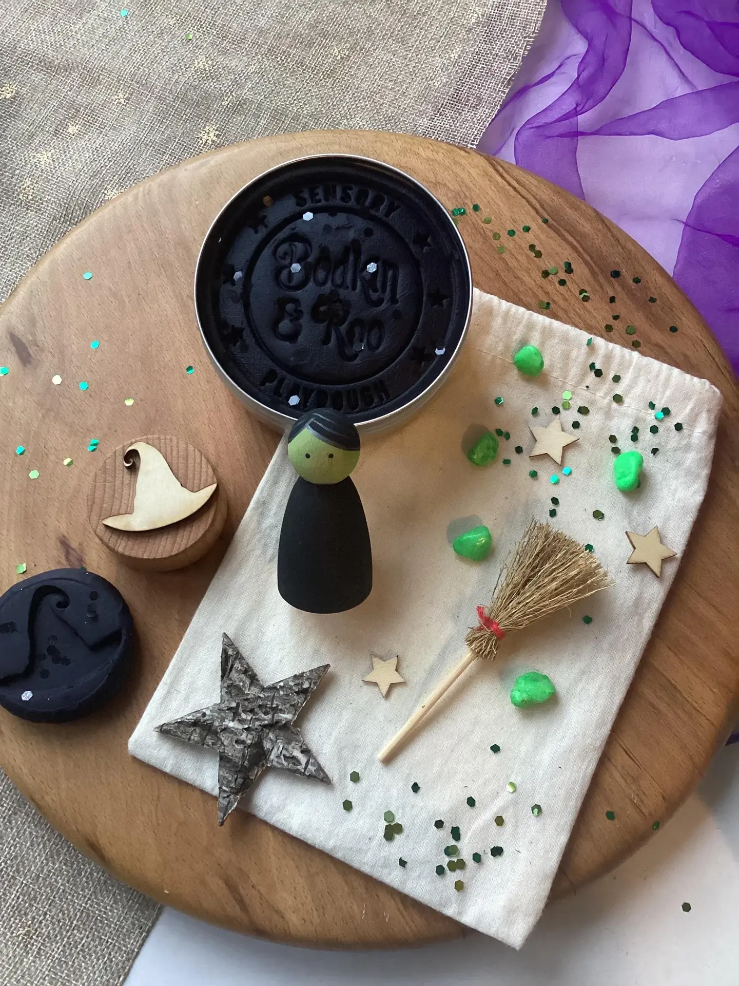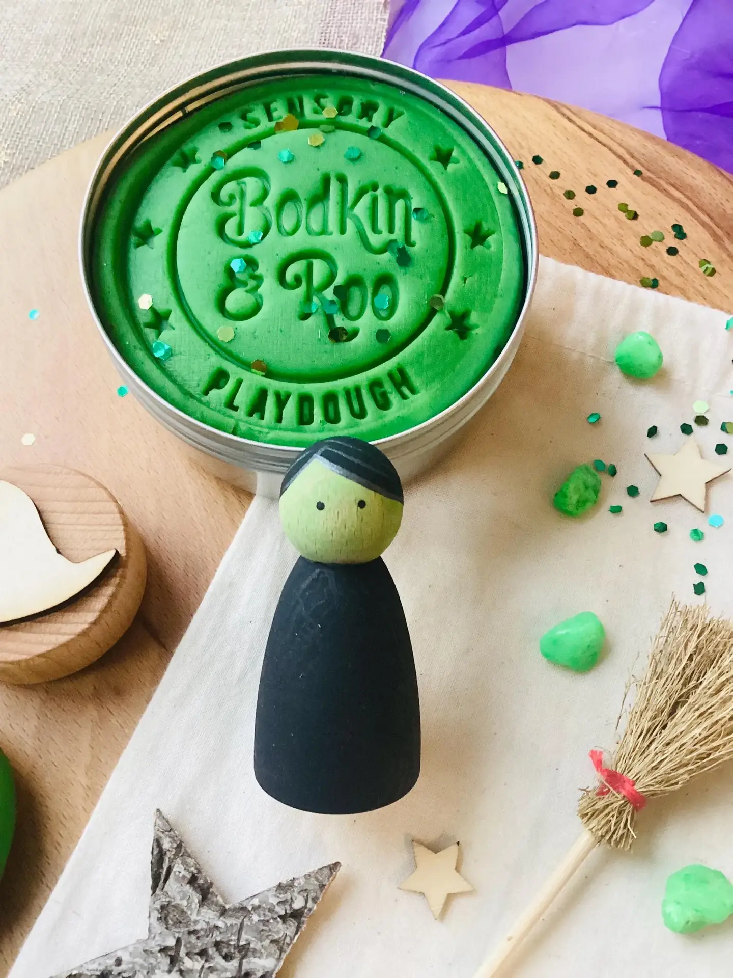 For all the mini Wicked fans, this play dough kit is inspired by the hit musical and movie! Complete with the cutest Elphaba inspired wooden peg doll and packed with loose parts all ready for your little ones to get busy imagining......