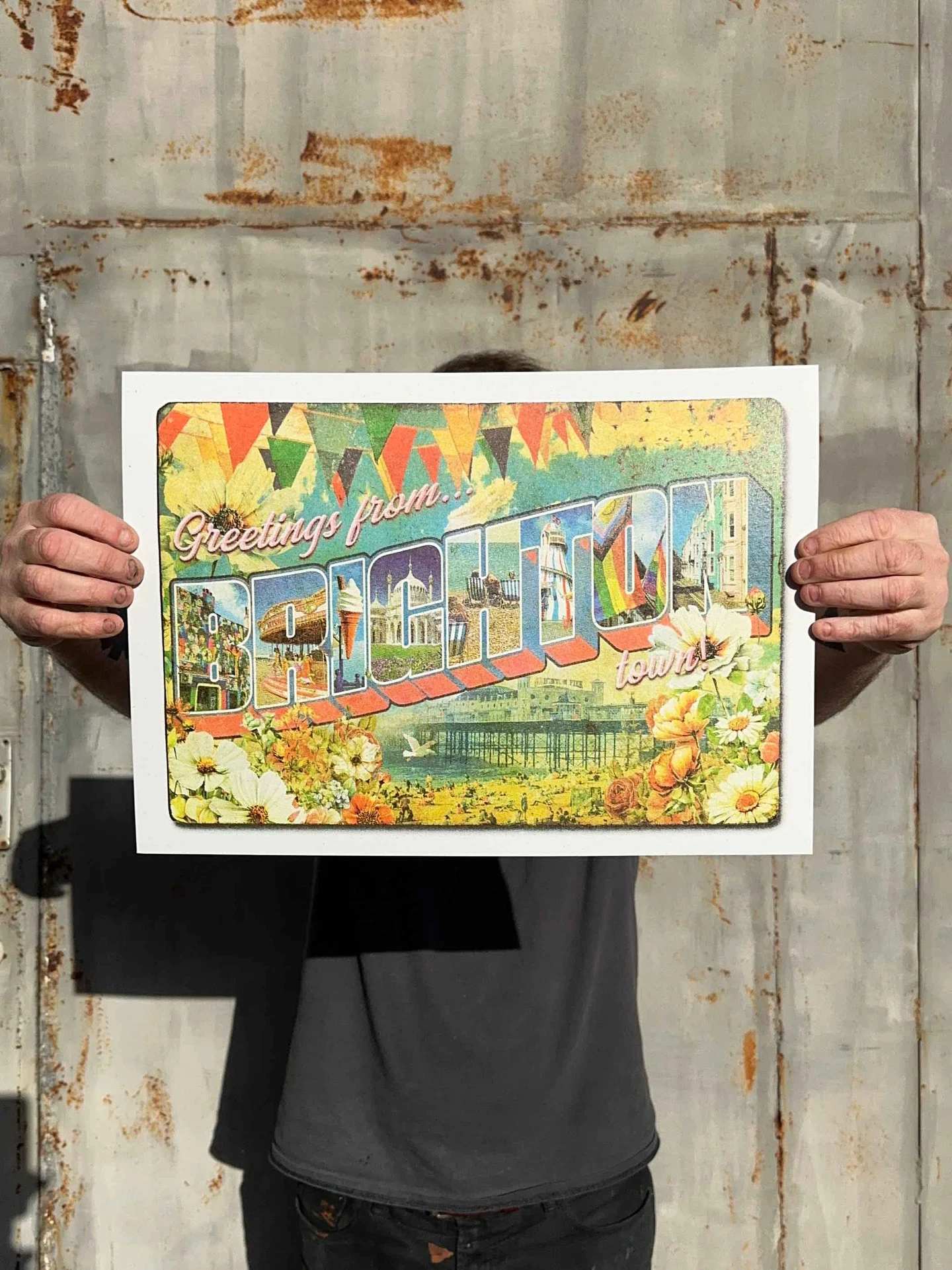 A 4-layer hand-pulled stochastic CMYK screenprint capturing the city's historic, eclectic, and profoundly welcoming seaside spirit. This piece successfully resolves the long-standing artistic quest to combine challenging typography and intricate collage i...