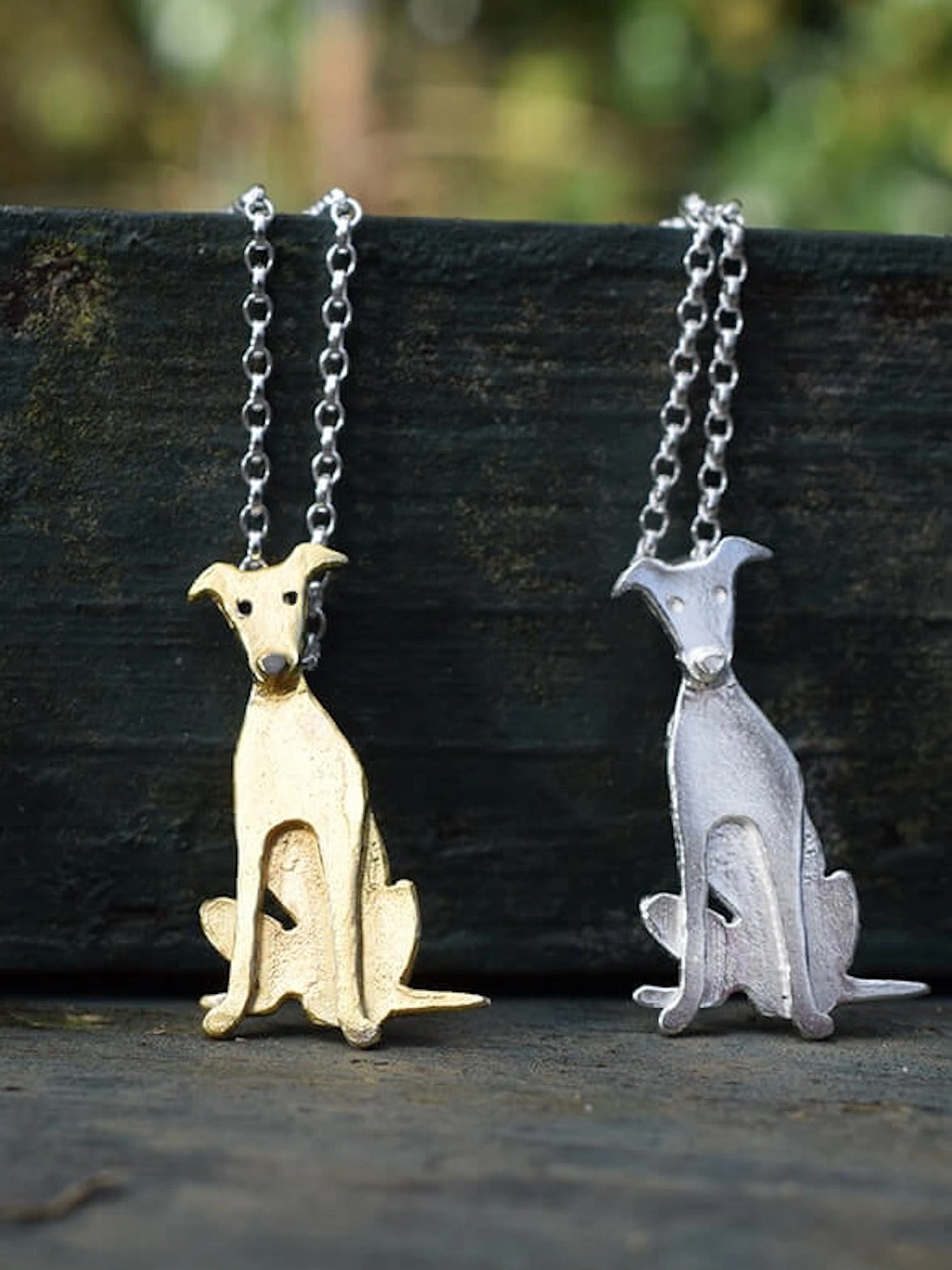 Each piece is finished by hand and some details may vary very slightly from the pendant shown. We think this adds to the charm as you can be sure your Greyhound necklace is one of a kind!