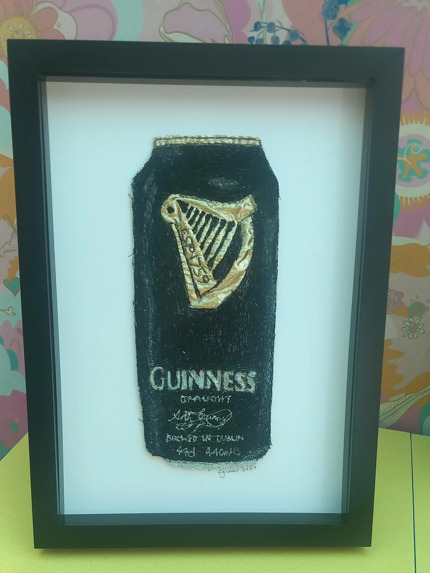 Machine Embroidered & Hand Painted Guinness Irish Stout Draught Can – Fun Quirky Kitchen Wall Art