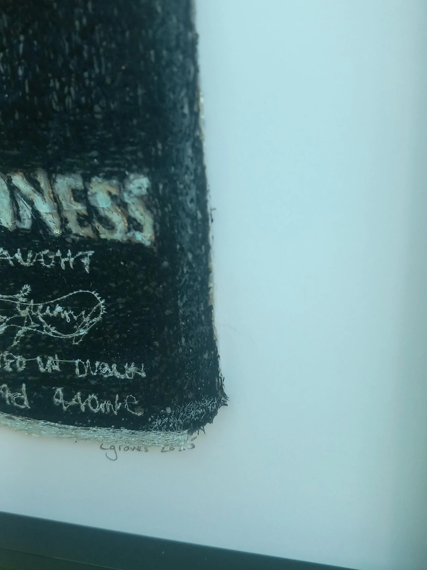 This unique piece is both machine embroidered (free motion embroidery) and hand painted, inspired by the iconic Guinness Irish Stout Draught can. I love using metallic thread to make the famous gold Guinness logo stand out beautifully!