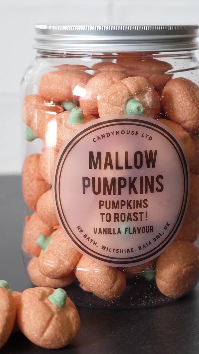 Sugar coated Pumpkin marshmallows. Halloween in a jar!