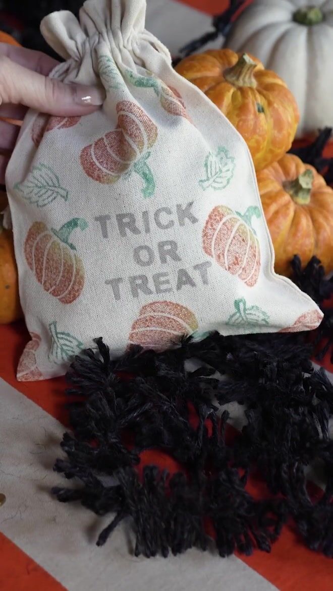 A mini drawstring bag is ideal for small hands but large enough to fill with Halloween goodies or to take Trick or Treating!