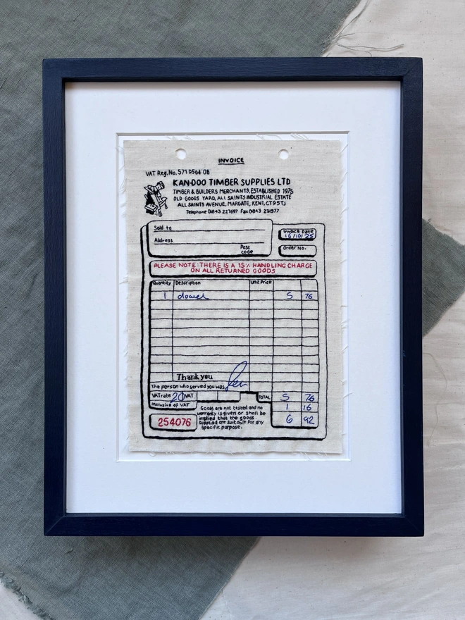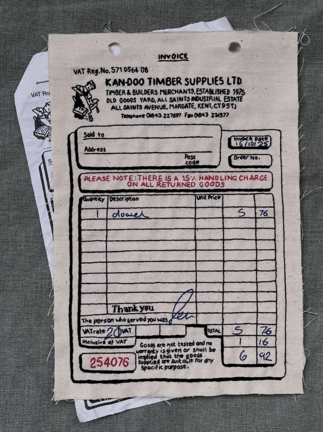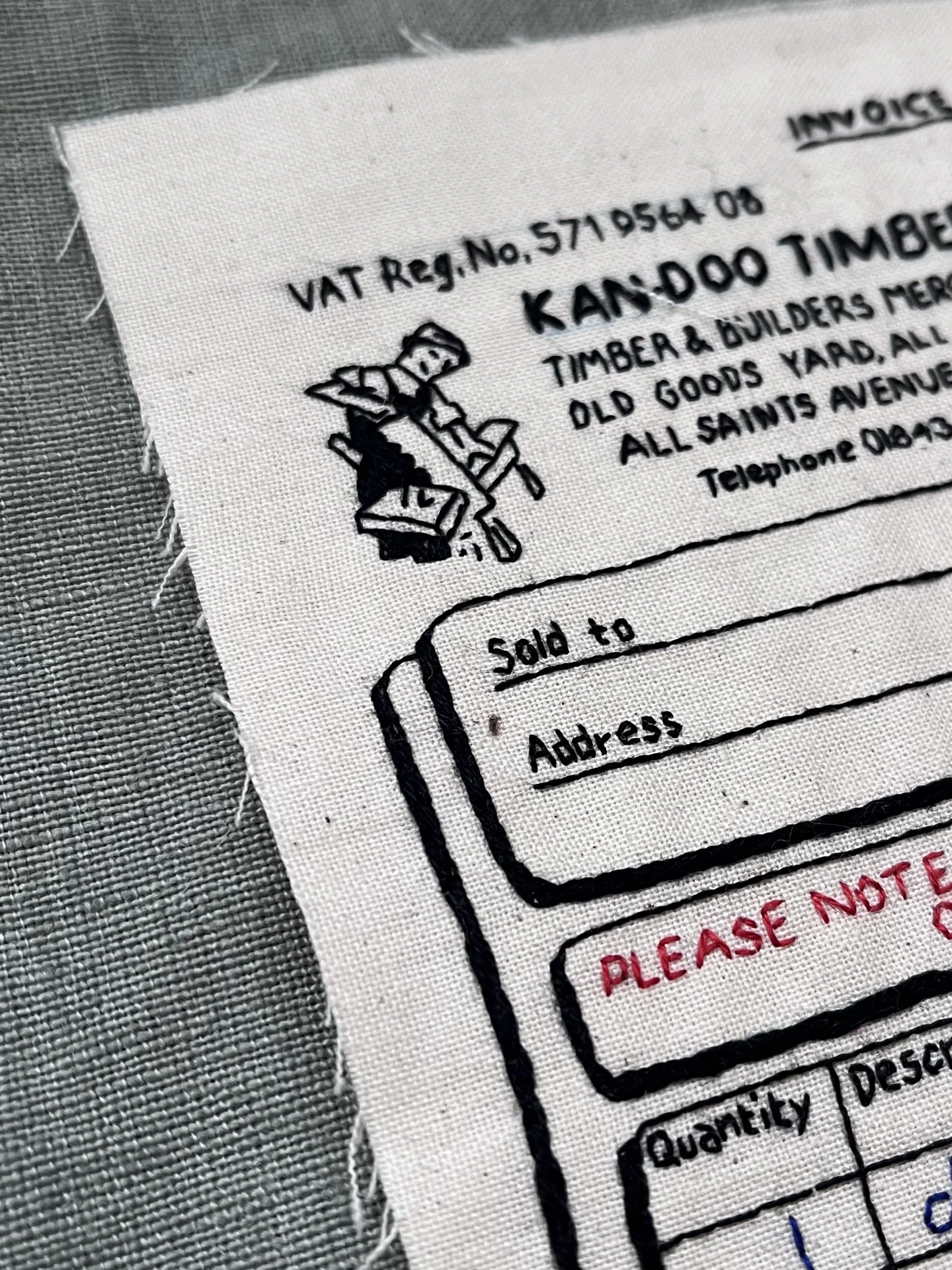 Hand Embroidered ‘Kan- Doo’ Receipt Artwork