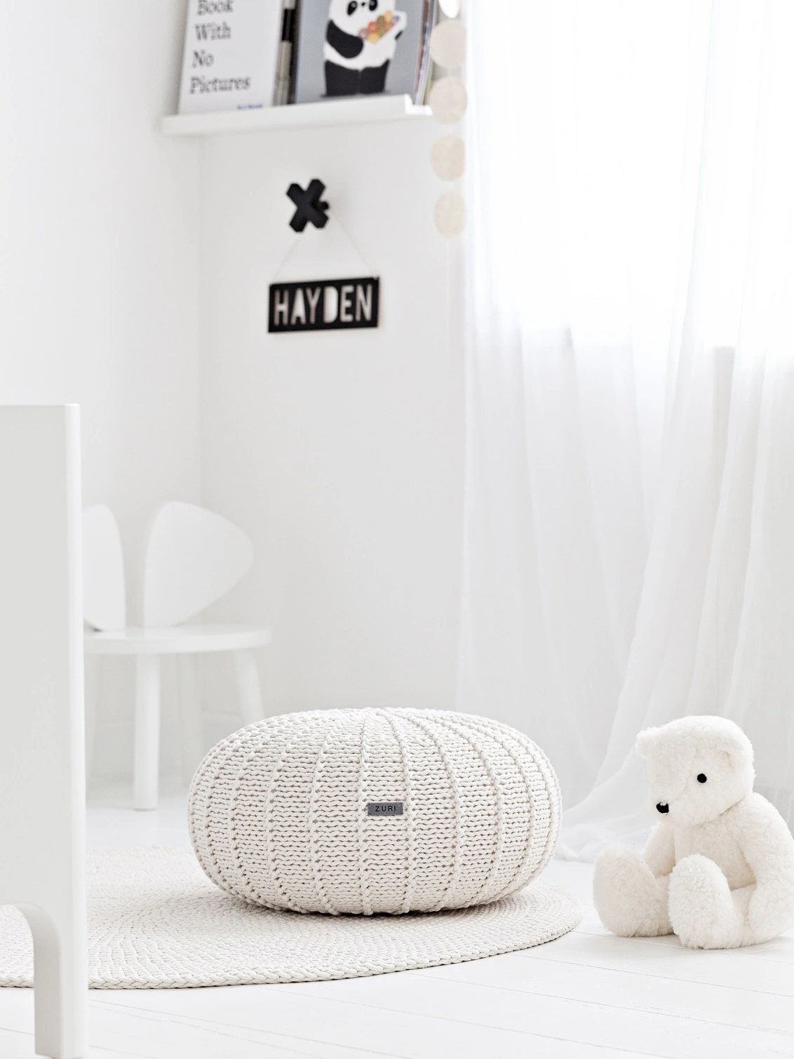 Children just love to play and explore new objects and textures. They are sure to love these cosy knitted pouffes to sit, play and climb as much as they will to rest and relax.