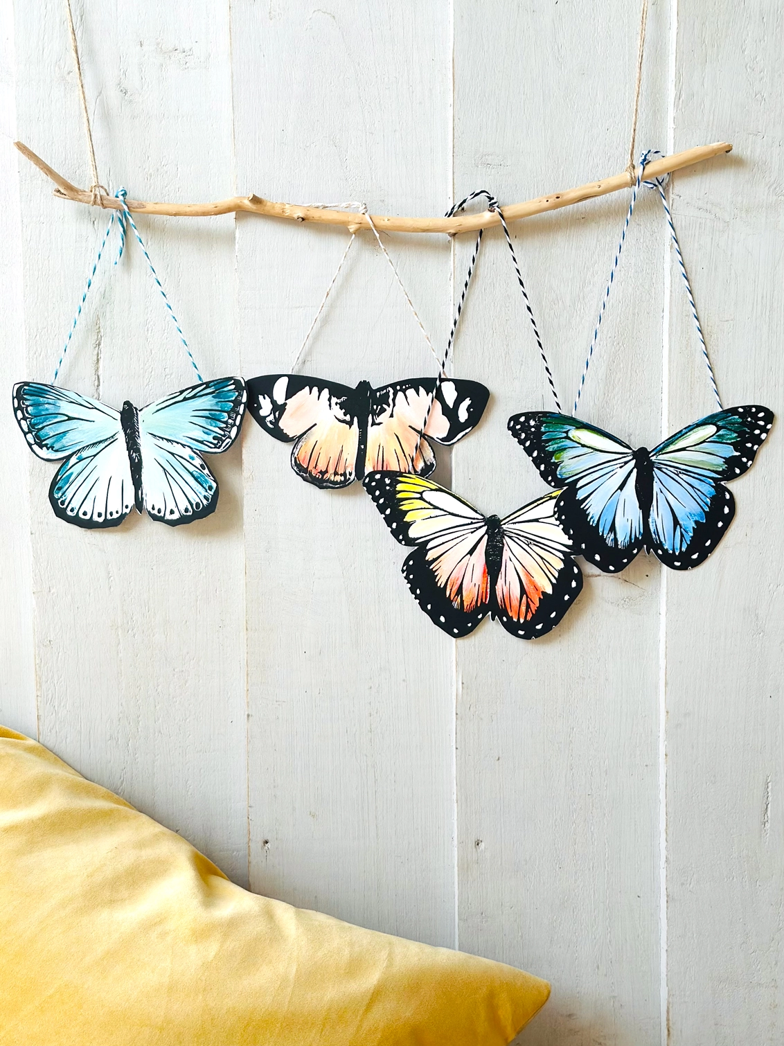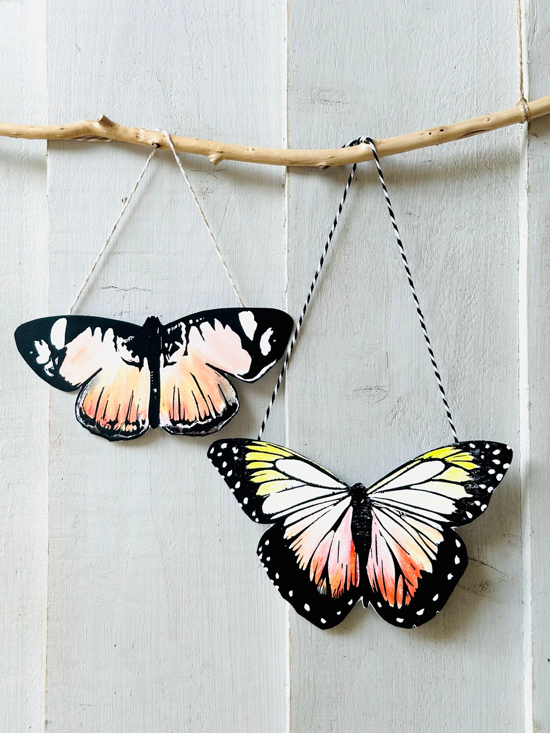 Hand Painted Butterfly Colourful Linocut Hanging Decoration