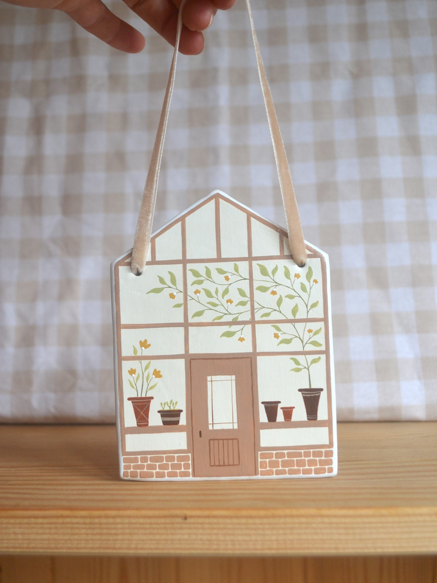 Hand Painted Clay Greenhouse Wall Hanging
