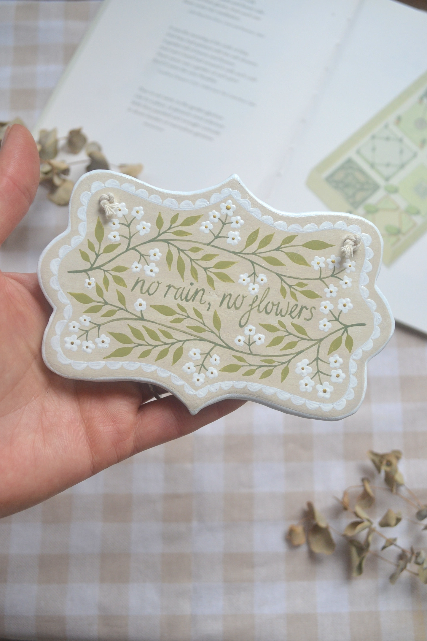 'No Rain, No Flowers' - 12x8 cm