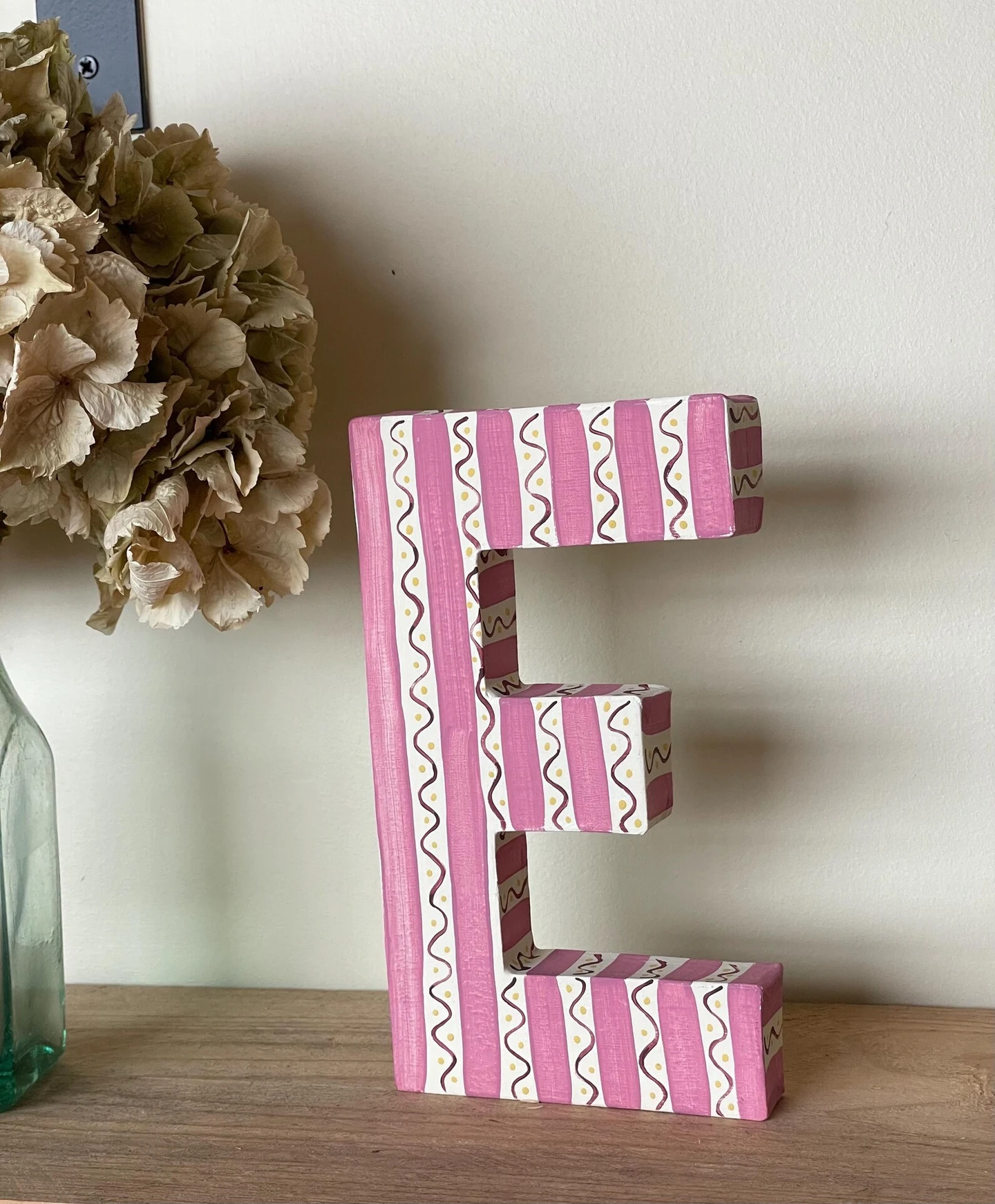 Hand painted decorative letter, perfect as a wall hanging or for displaying on a shelf. These make super presents for Christmas, birthdays and newborn babies. Perfect for a child’s bedroom, bedroom door, in your kitchen, sitting room or playroom.