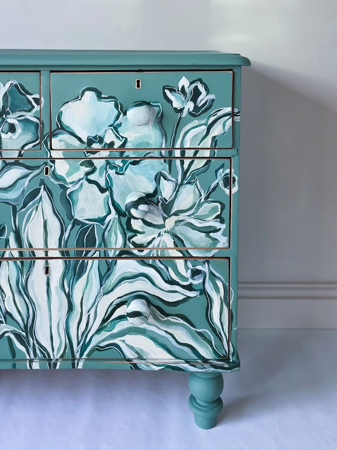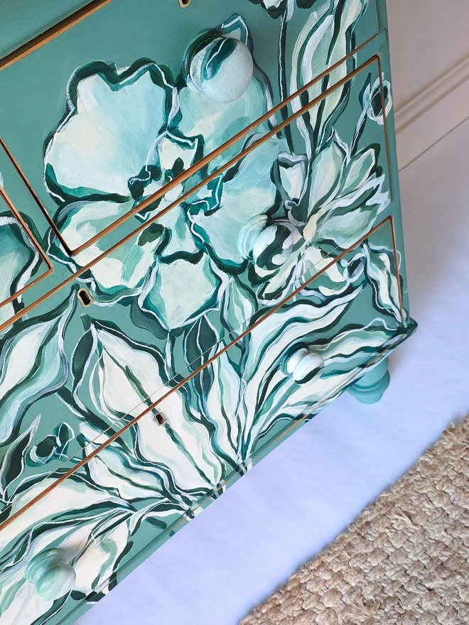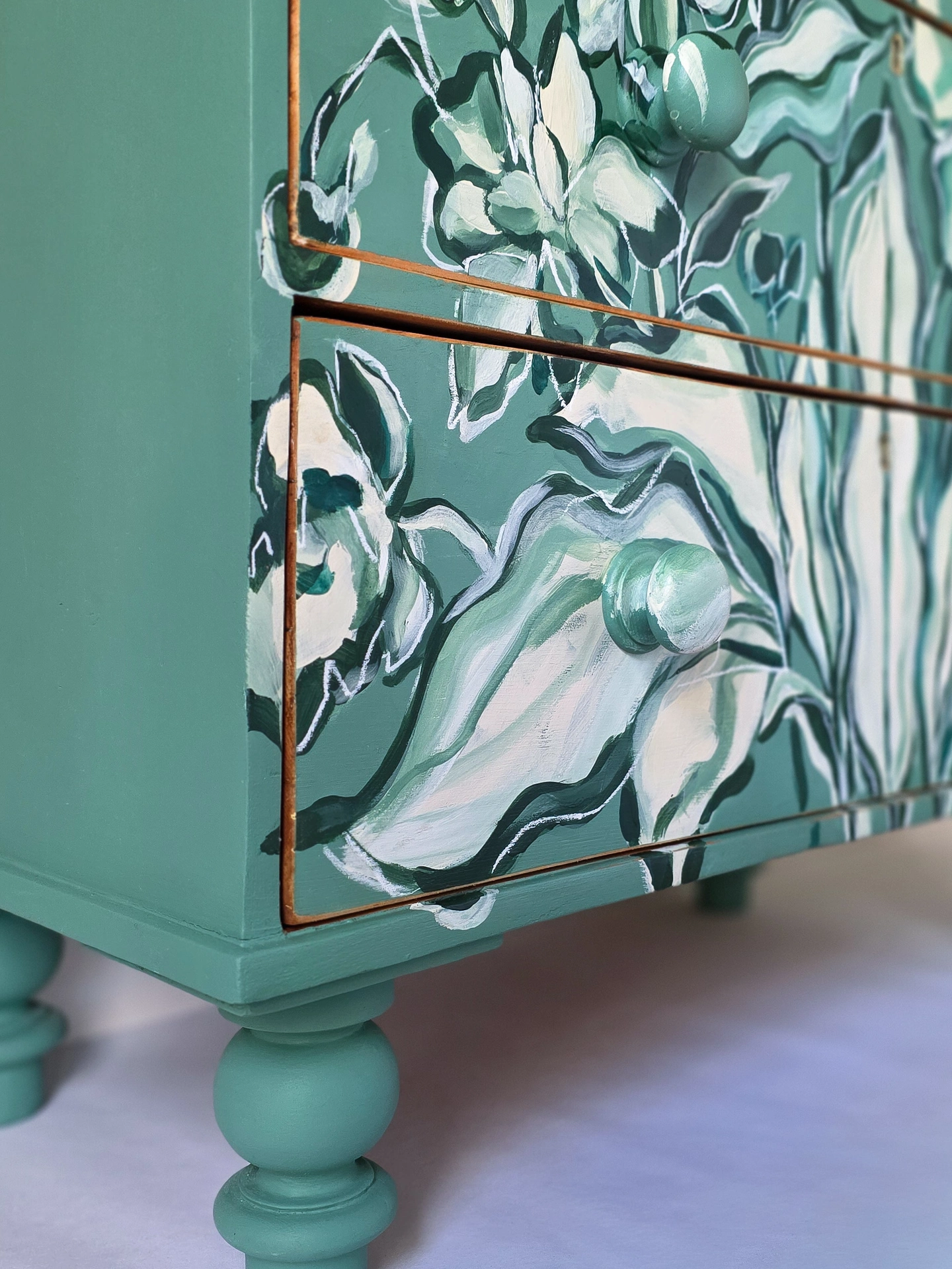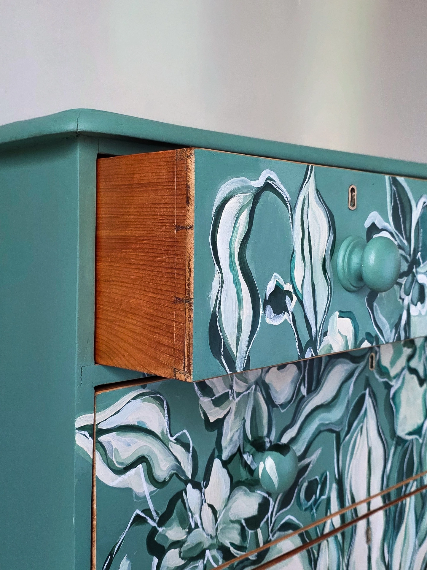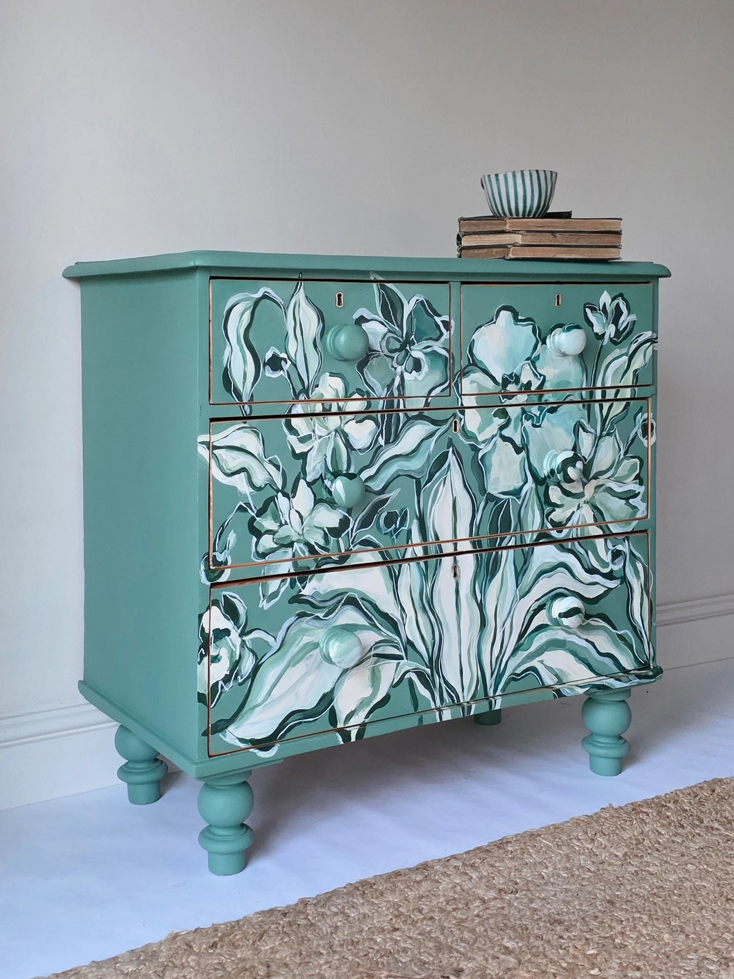 Add a touch of elegance and uniqueness to your home with ‘The Flora’ Hand-painted Floral Chest of Drawers. I love to create bespoke pieces; and this chest has been restored and crafted with love and attention featuring hand-painted details that make it truly one-of-a-kind.