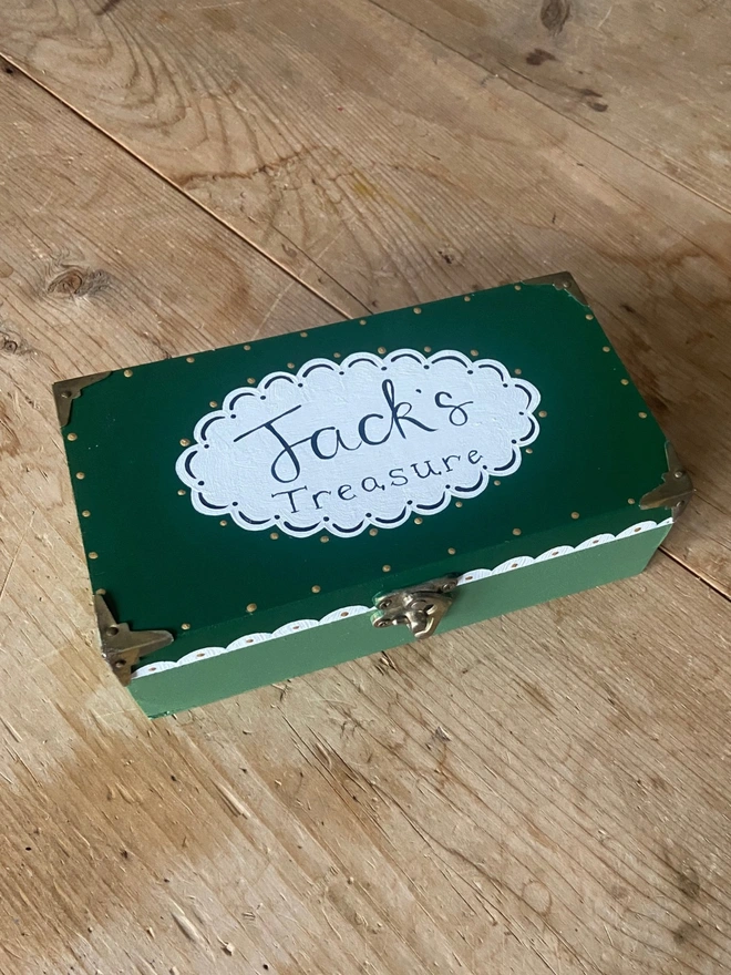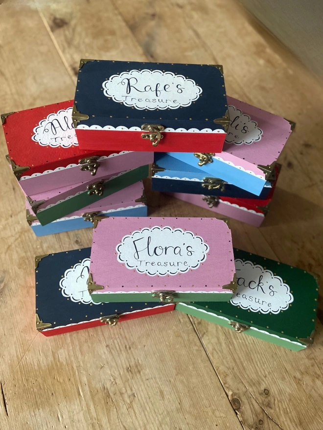The painted wooden treasure boxes are like little time capsules, holding memories or trinkets that are precious and meaningful or they make a lovely way to send love notes and chocolate to your little ones!...