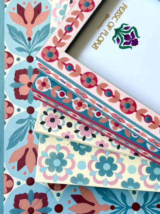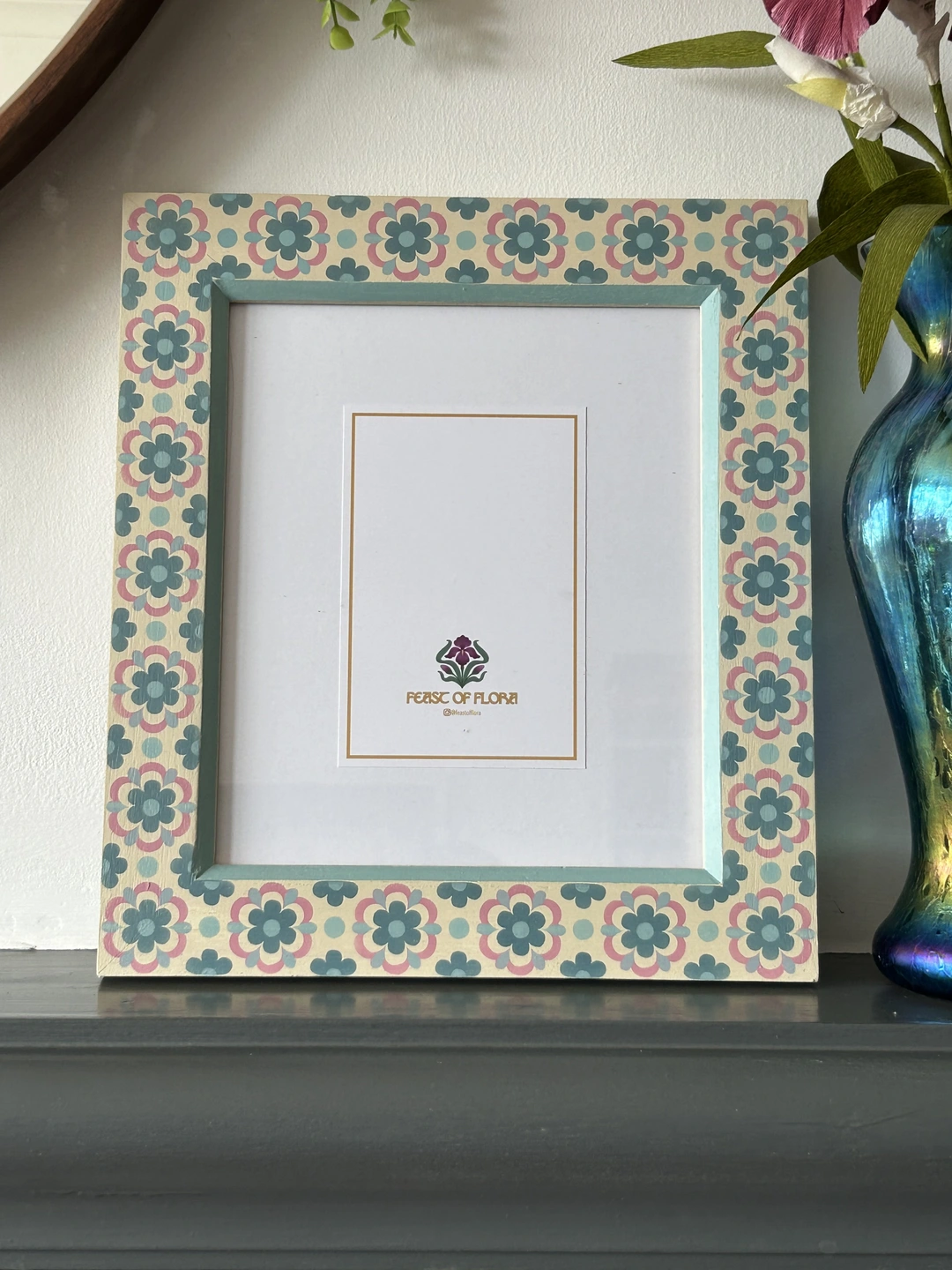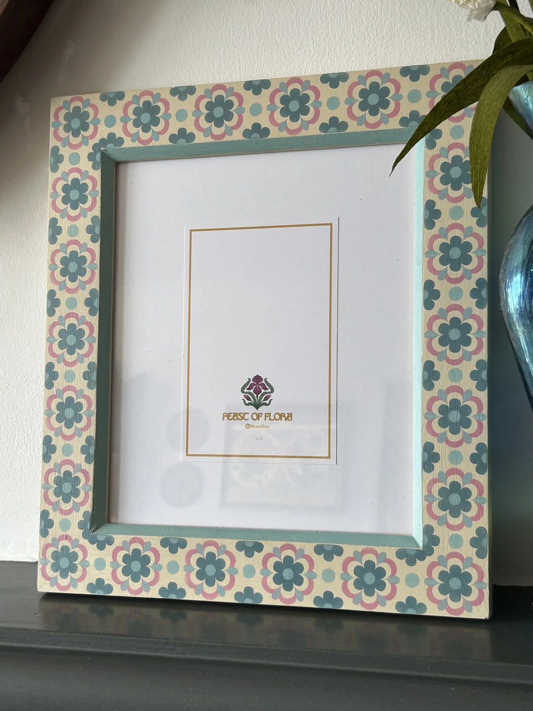 Hand Painted 'Spring Flower' Picture Frame - Blue