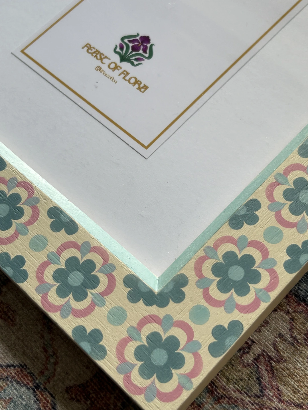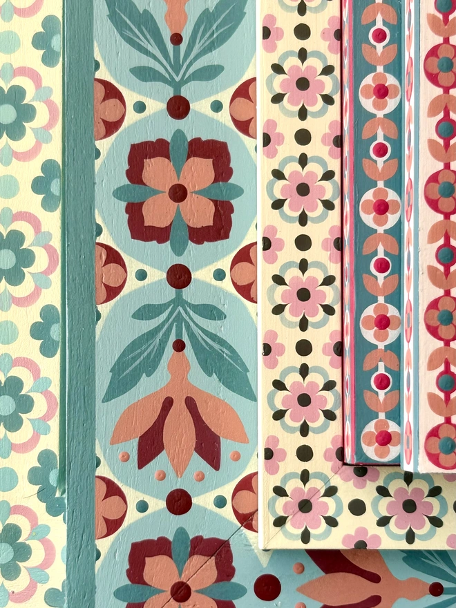 My process begins with hand-sketching my original floral designs, which are then rendered digitally to create custom stencils. Using an airbrush and high quality chalk paint ensures a flawlessly smooth finish.