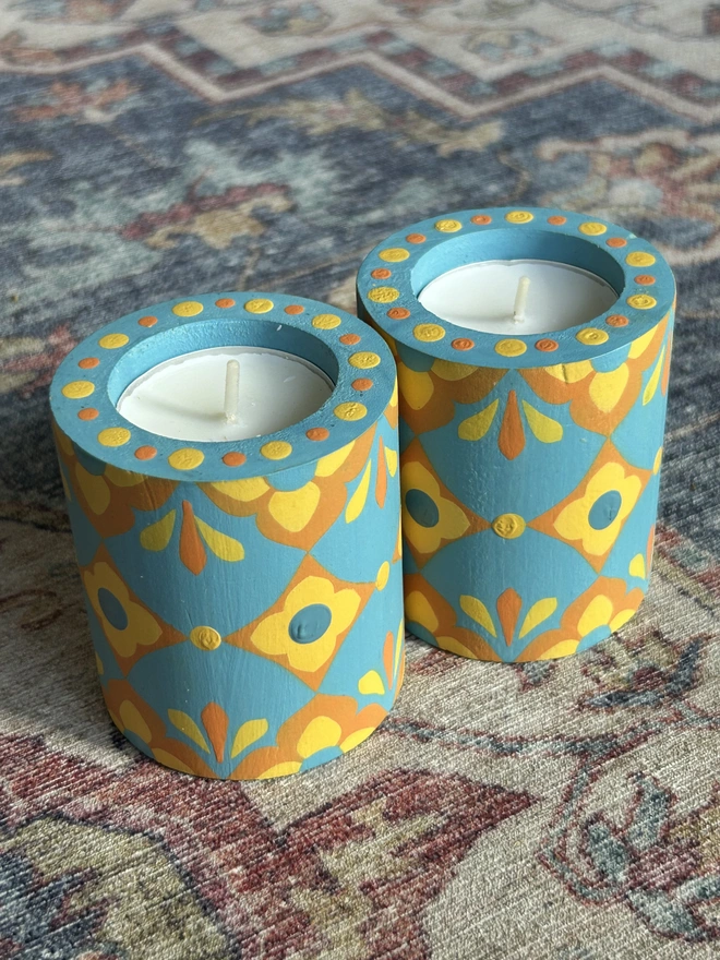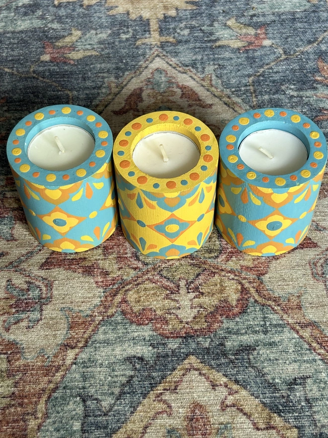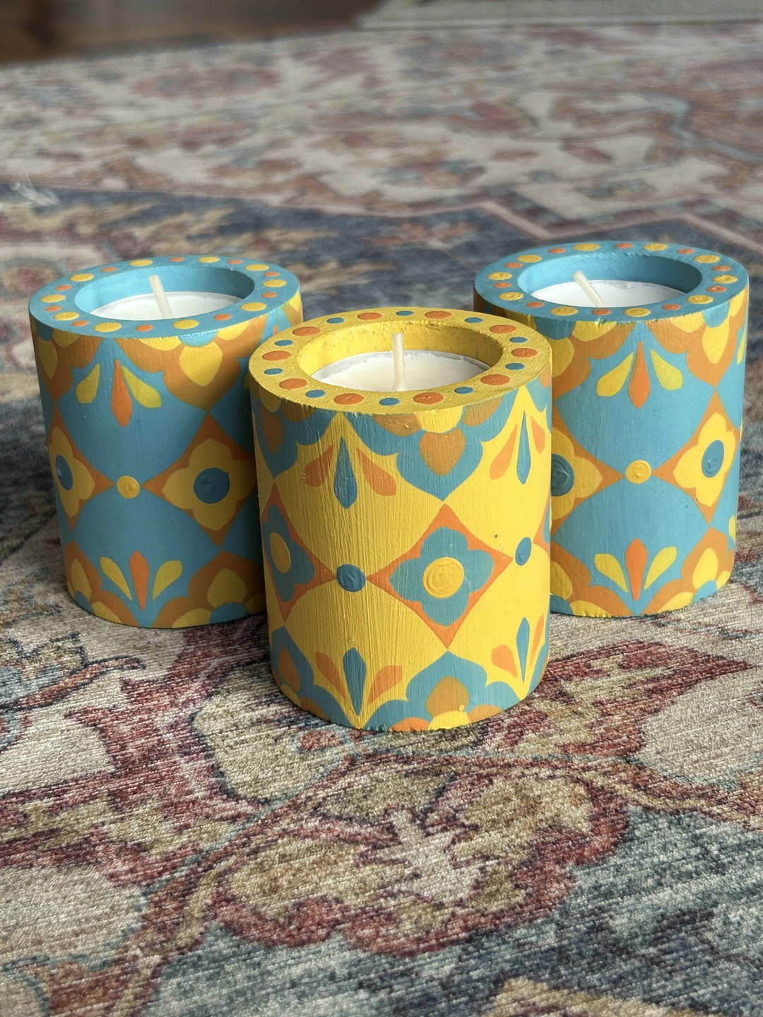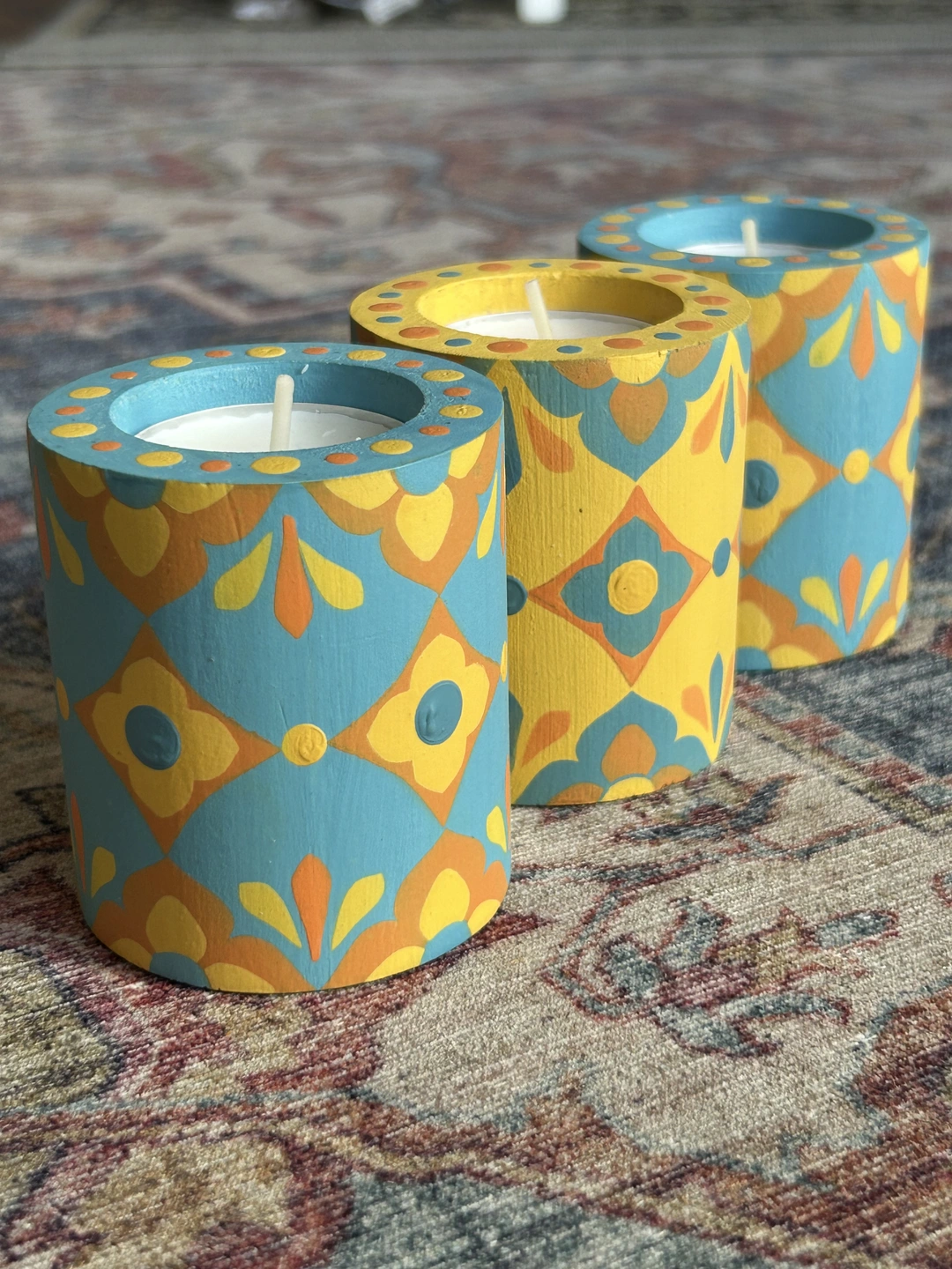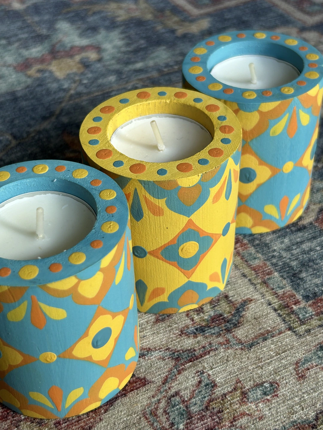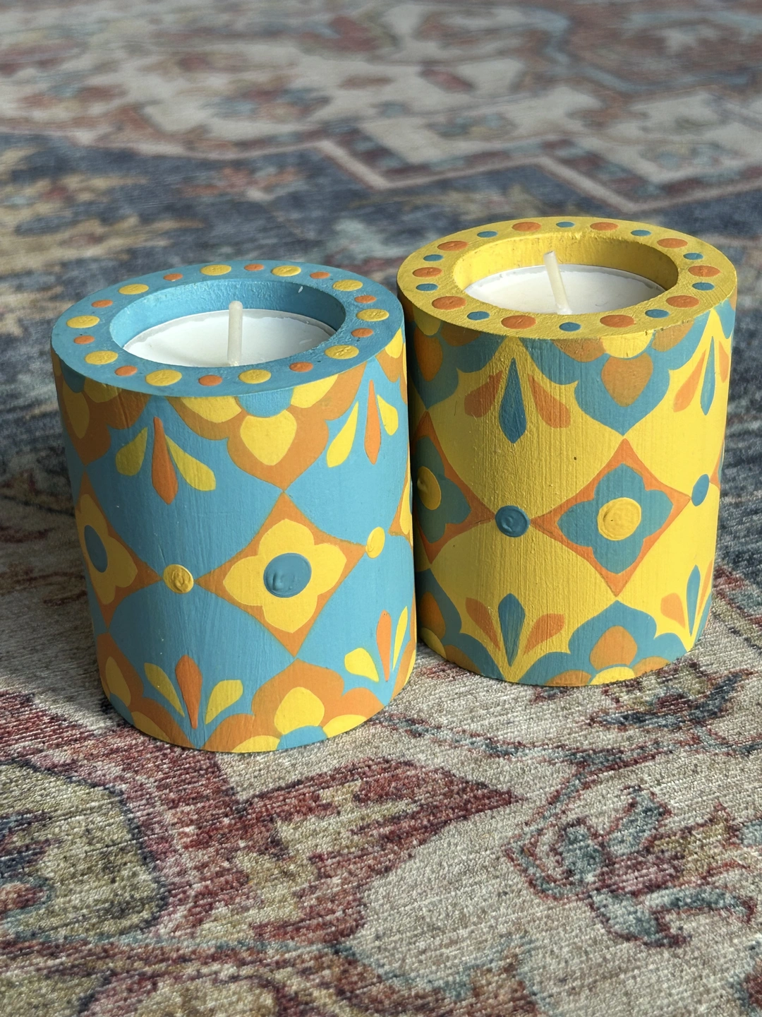 Hand Painted Wooden 'Carnival' Tea Light Candle Holders