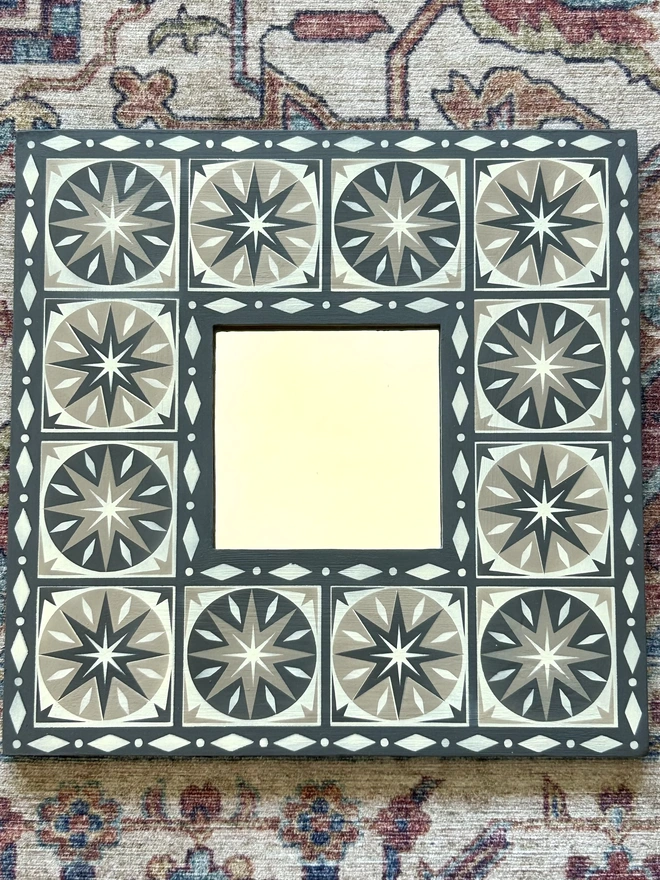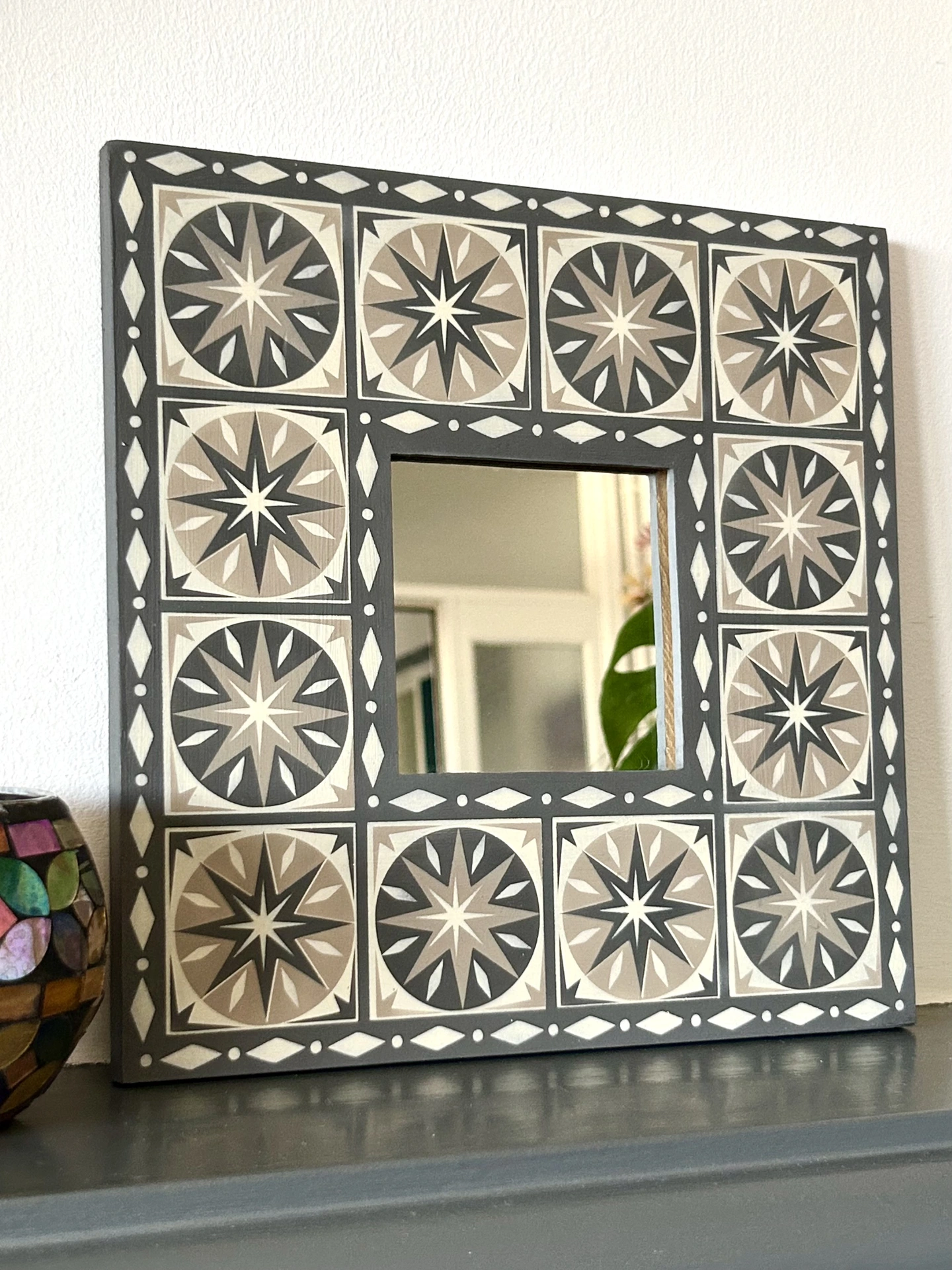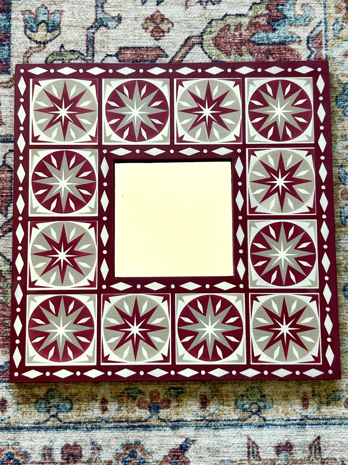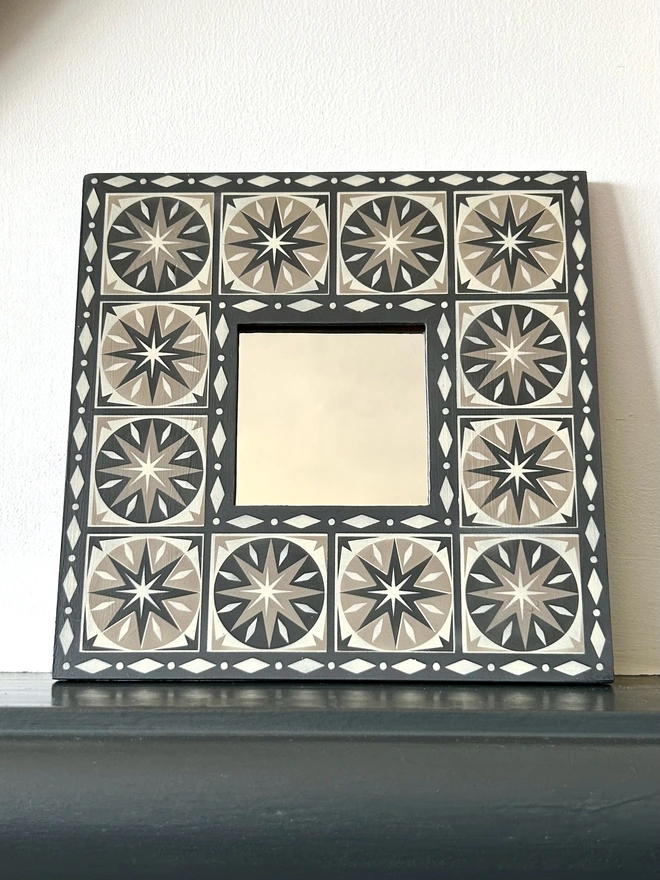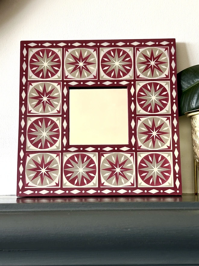 Hand Painted Wooden 'Star Burst' Square Mirror