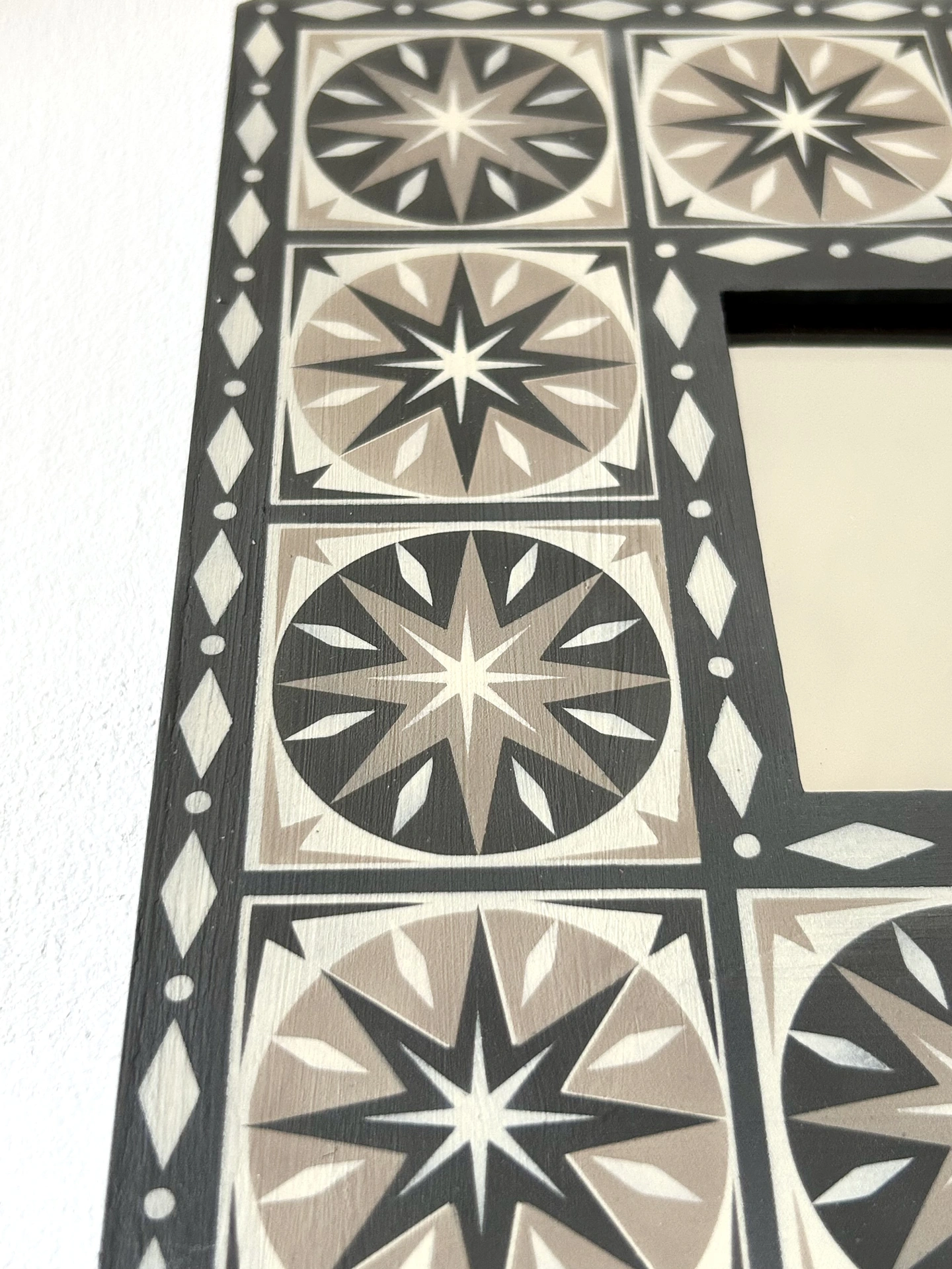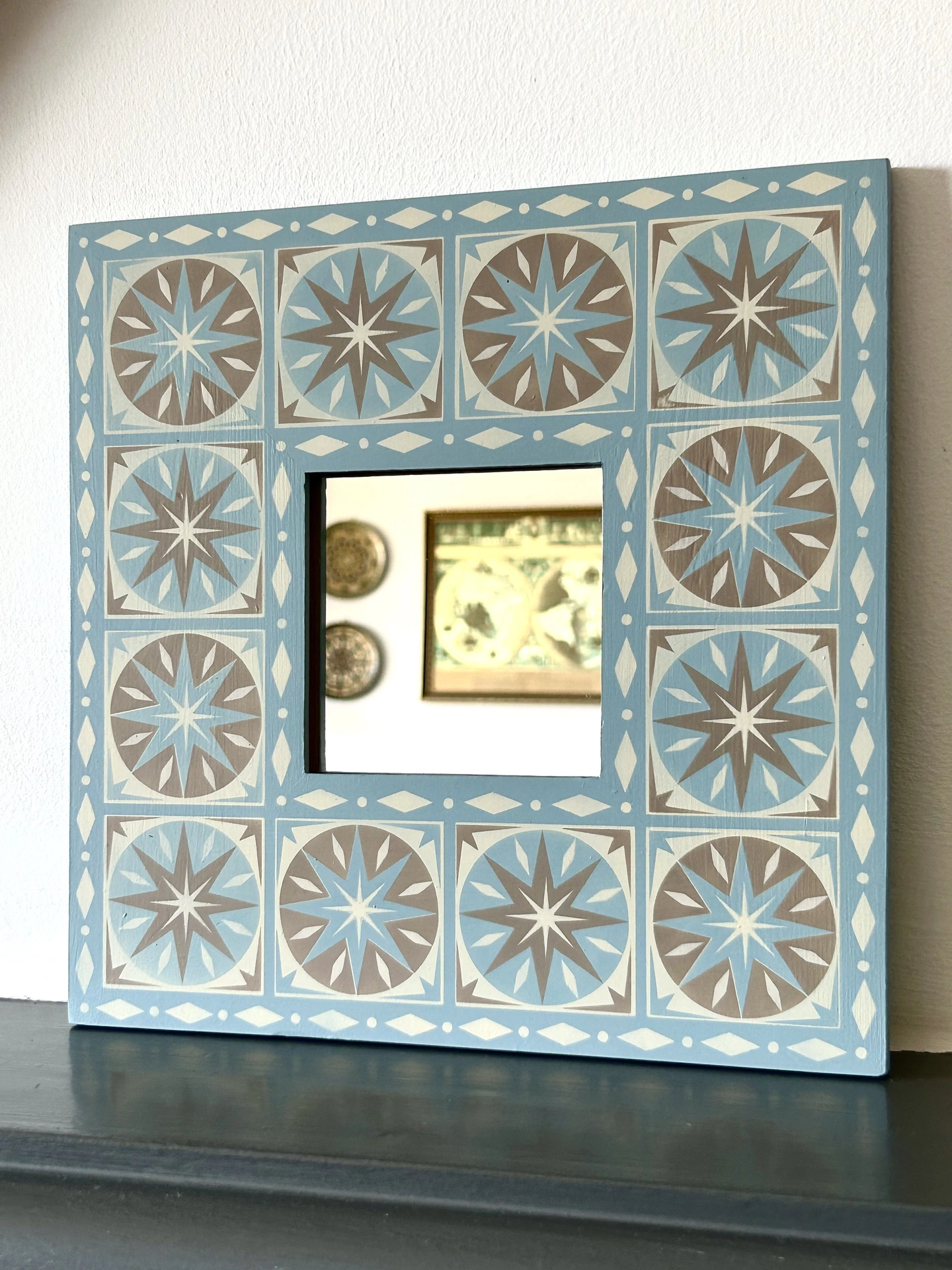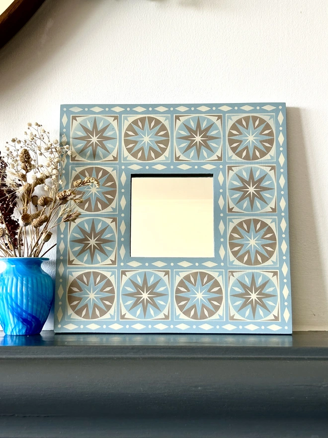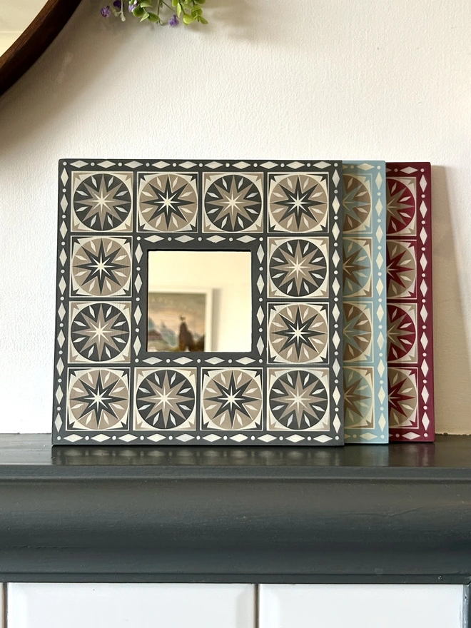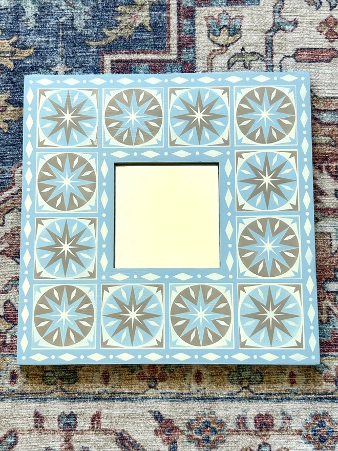 Hand Painted Wooden 'Star Burst' Square Mirror