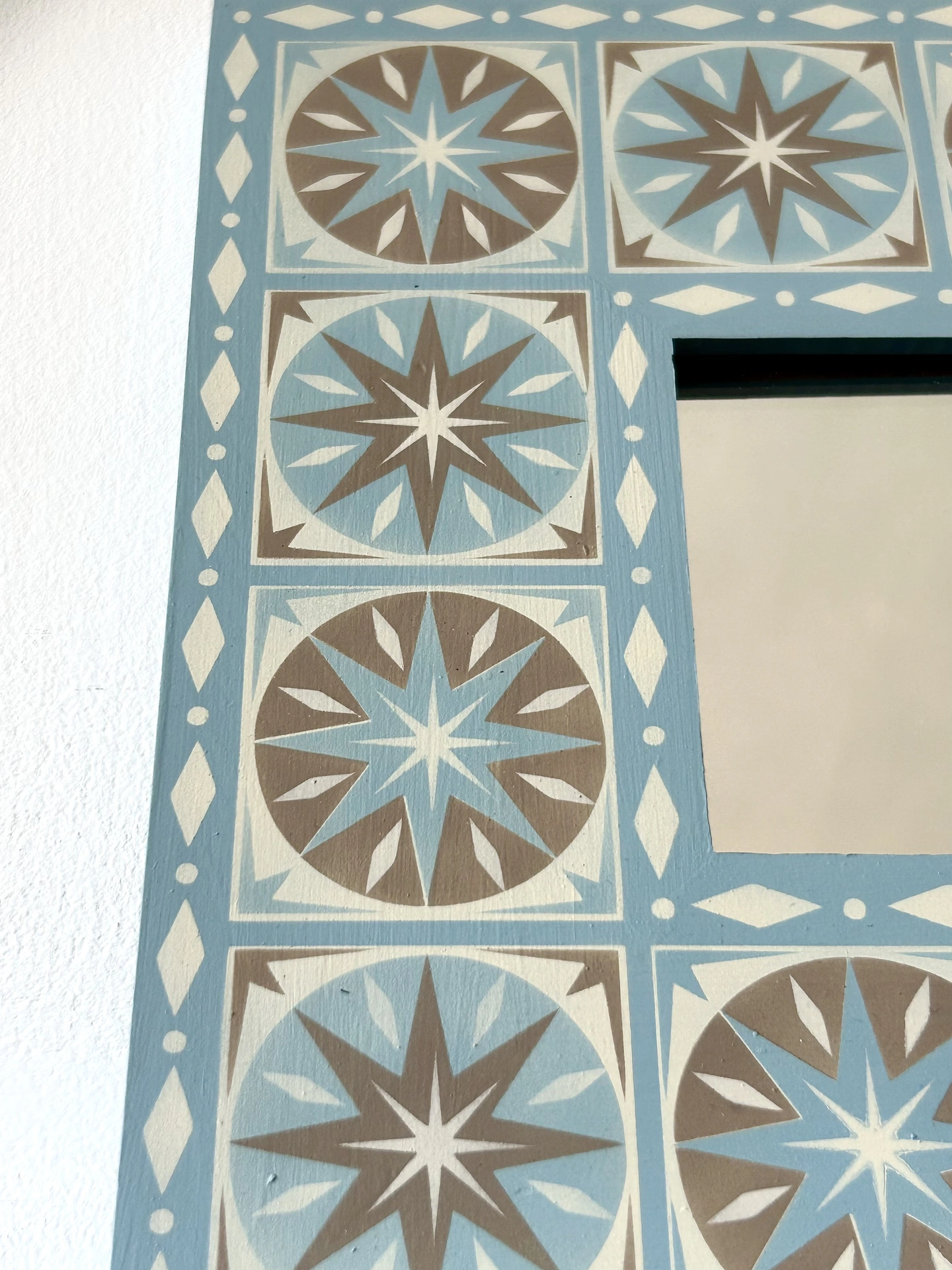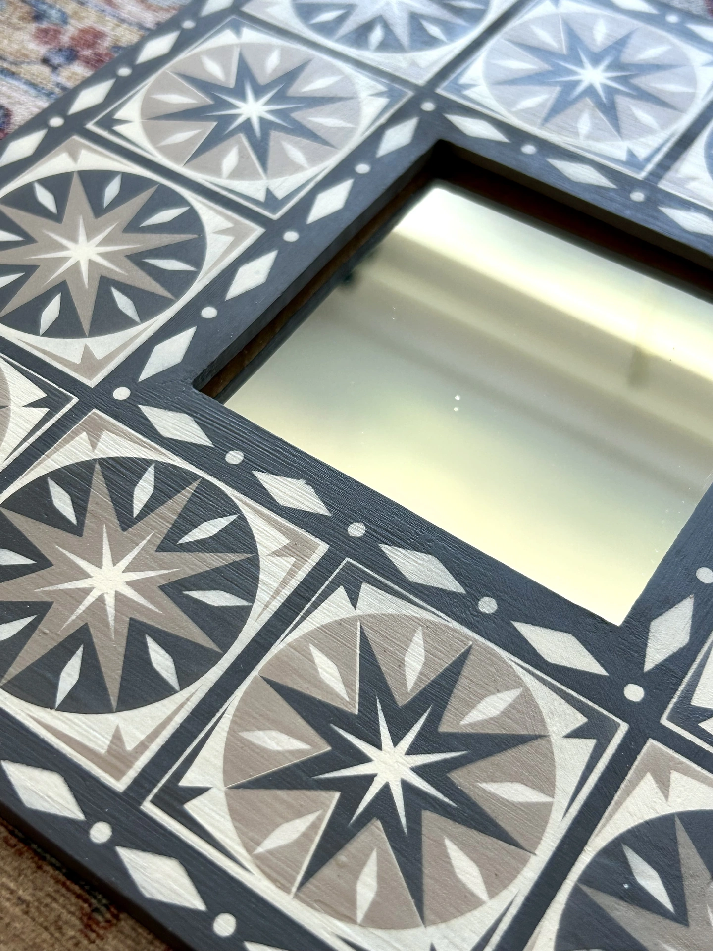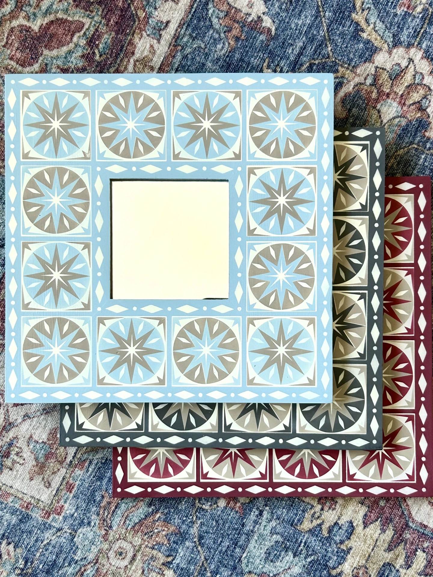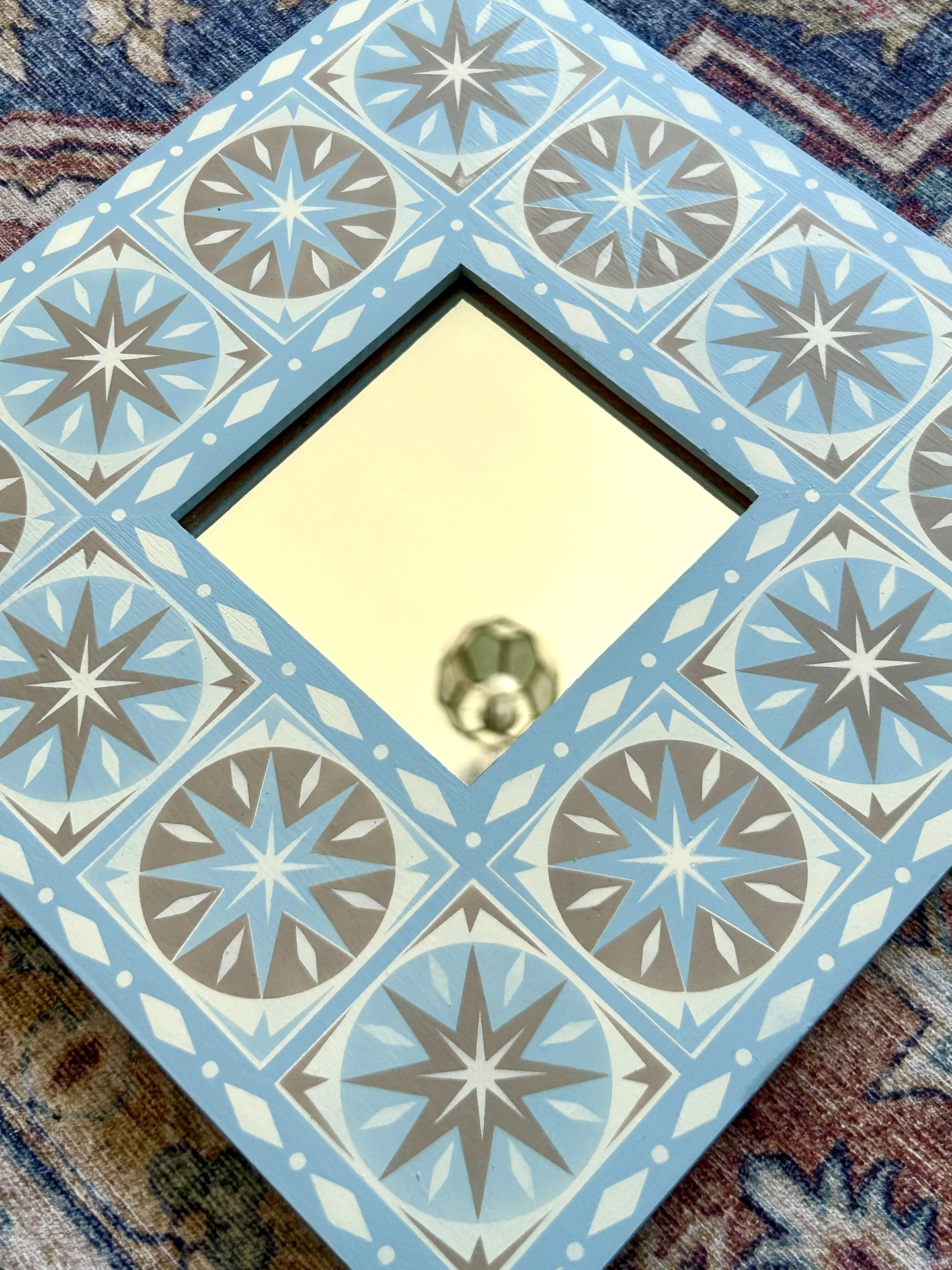 Hand Painted Wooden 'Star Burst' Square Mirror