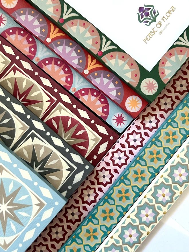 To ensure longevity and enhance the richness of the colours, I have finished the frames with a protective coat of matt varnish. This not only seals and protects the paint but also brings out the depth of colour for a truly stunning finish.