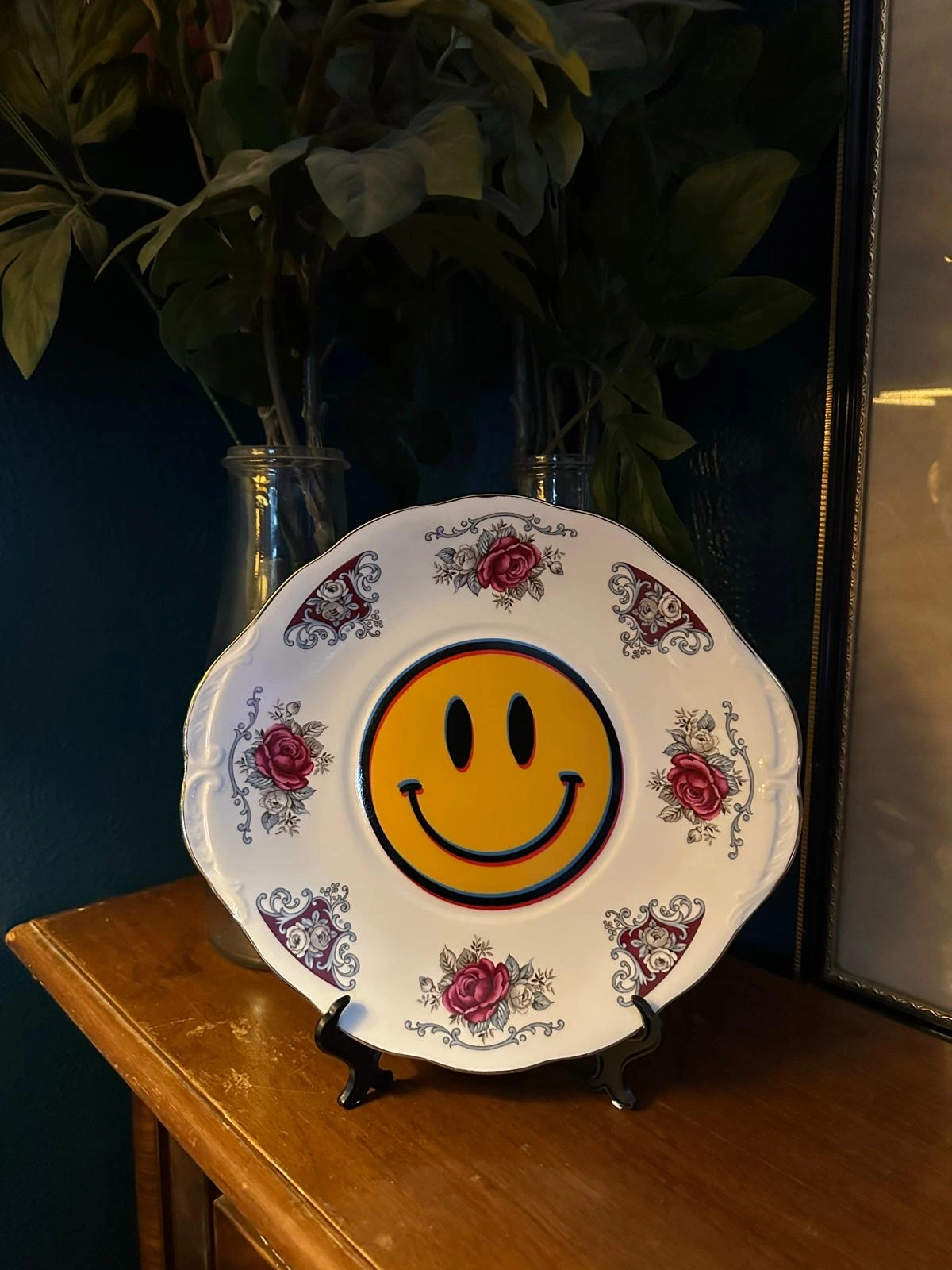 You know what, we can't smile *all* the time. It's normal! But hopefully, when you look at this pretty Smiley platter on your wall, it'll remind that someone, somewhere, is thinking about you, and smiling.