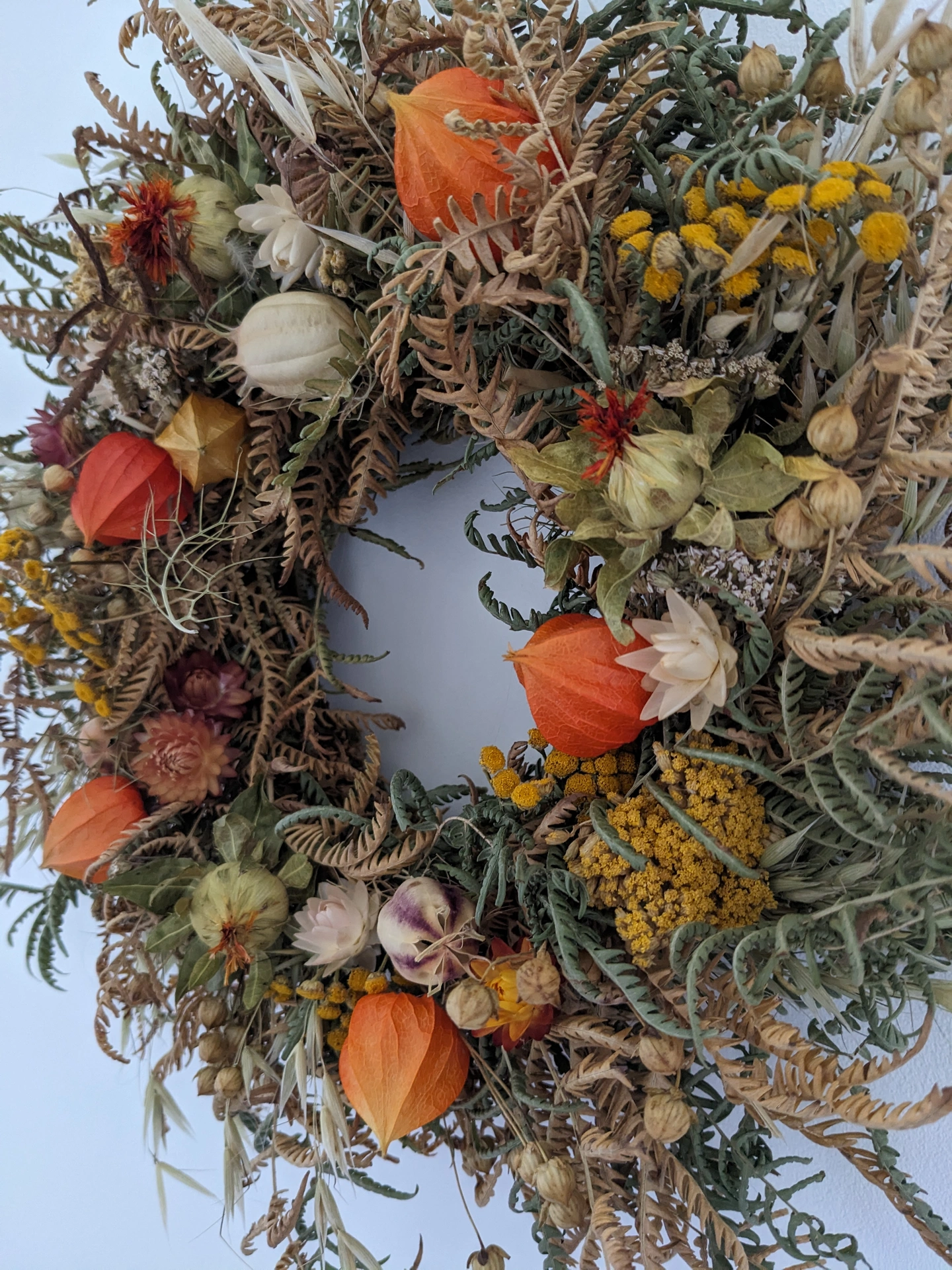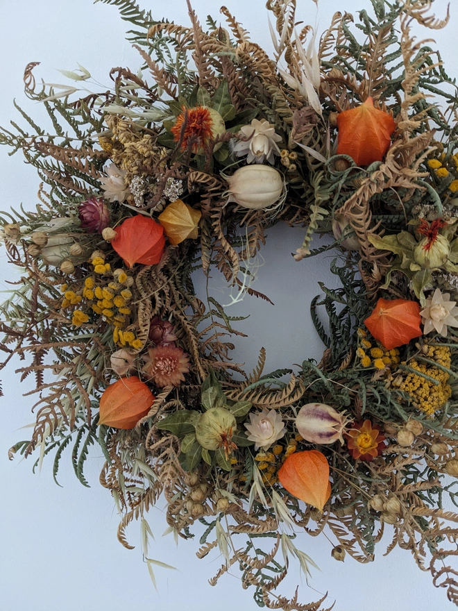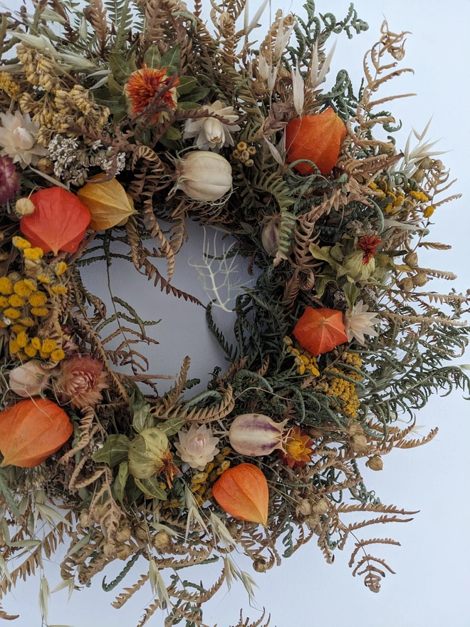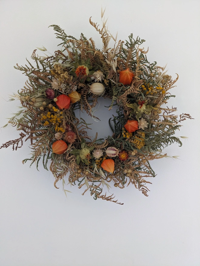 A beautiful handcrafted autumn wreath full of seasonal warmth and natural texture. Made with care using dried materials in rich autumnal tones this wreath captures the essence of the season.