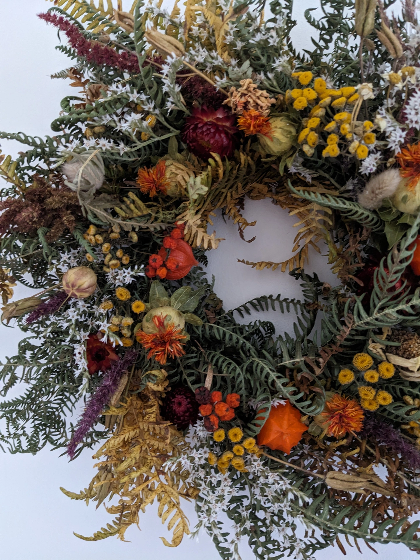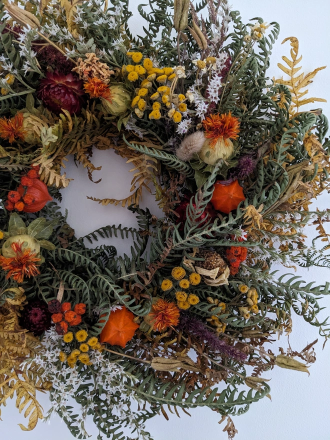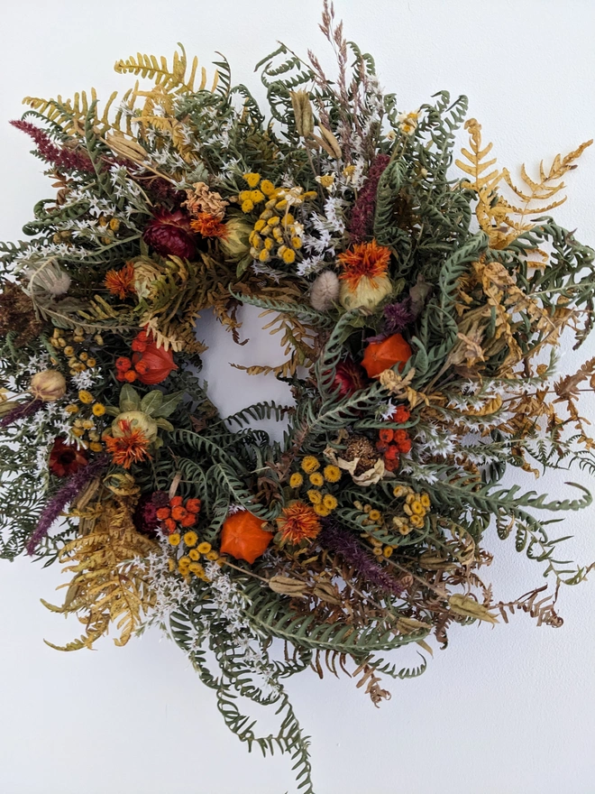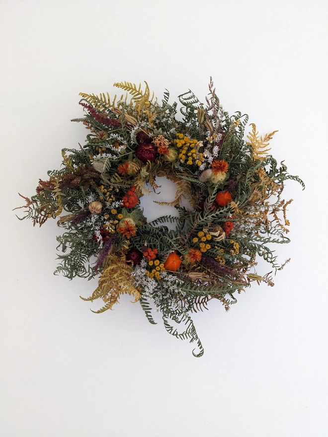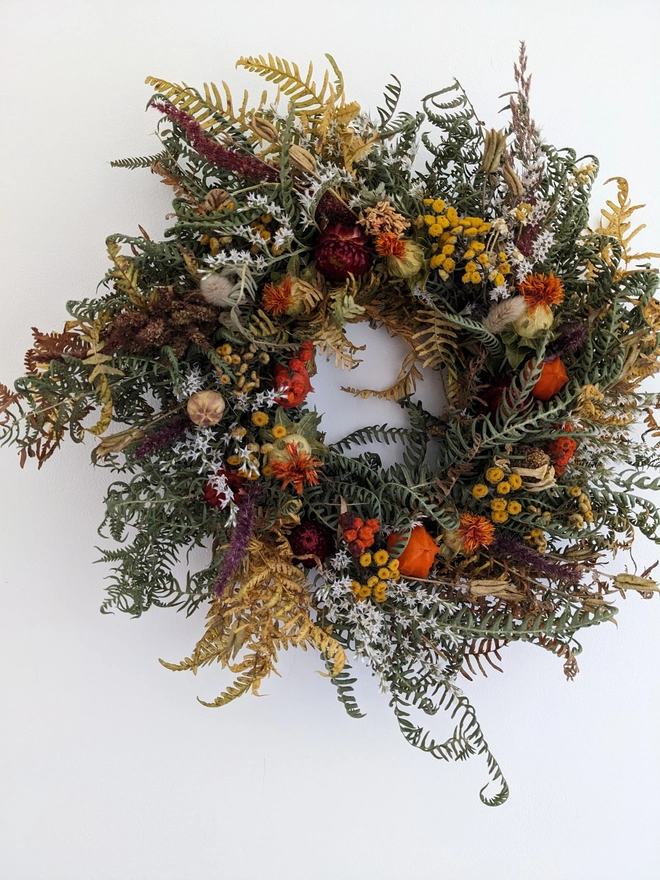 A beautiful handcrafted autumn wreath full of seasonal warmth and natural texture. Made with care using dried materials in rich autumnal tones this wreath captures the essence of the season.