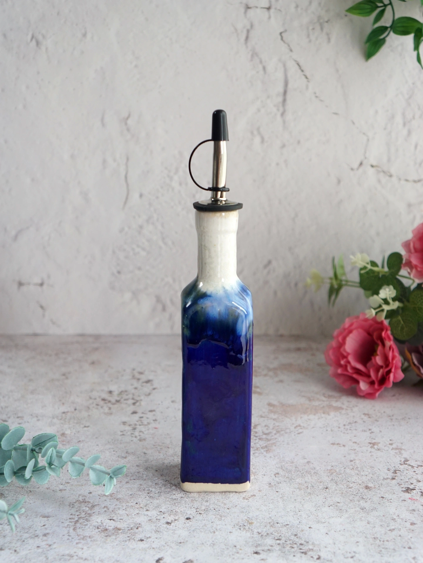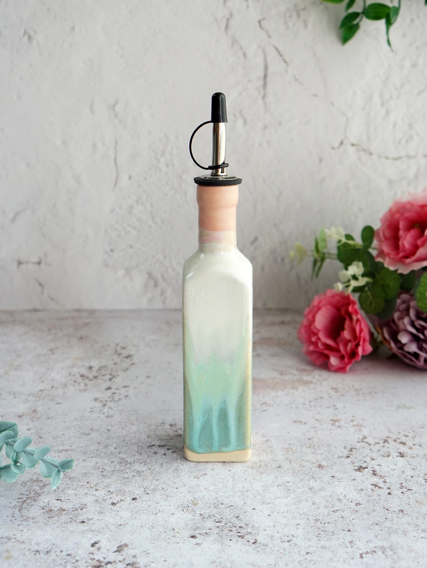 A Ceramic Oil / vinegar Pourer Bottle handcrafted from white stoneware clay and finished in a variety of vibrant colourful glazes...