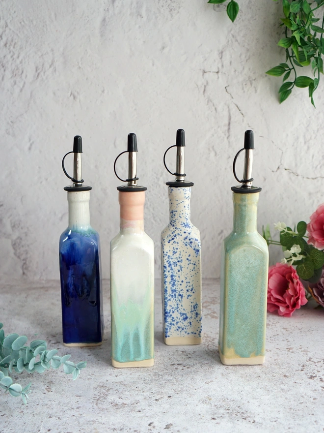 Handcrafted Ceramic Oil Bottles - Various Colours