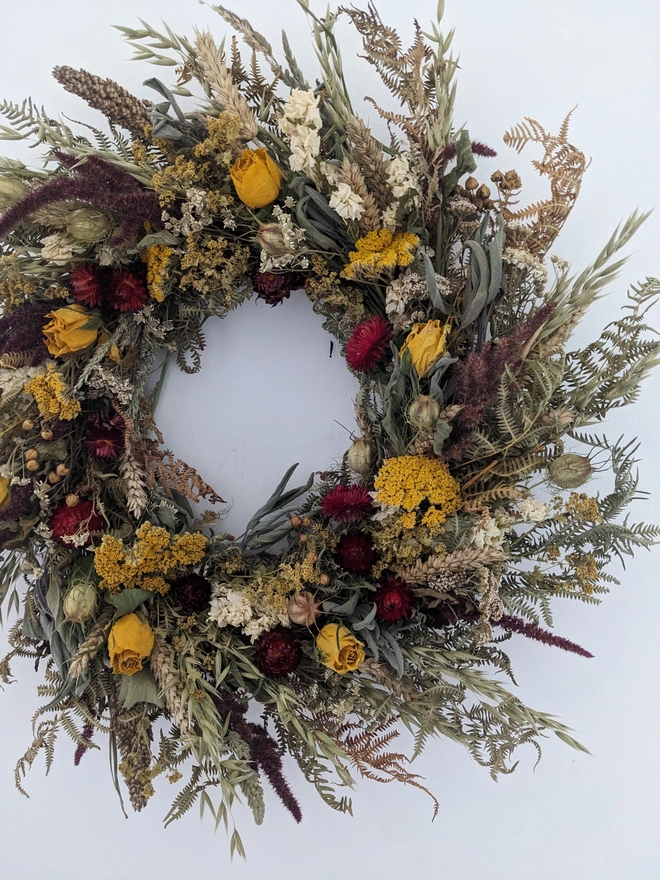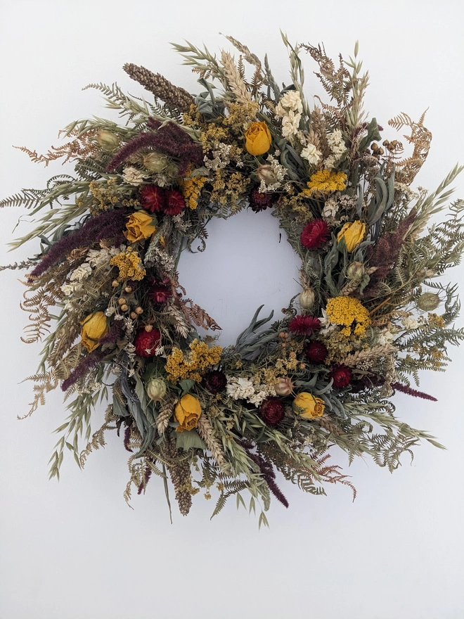 Handcrafted Dried Flower Wreath In Autumn Colours – 50cm