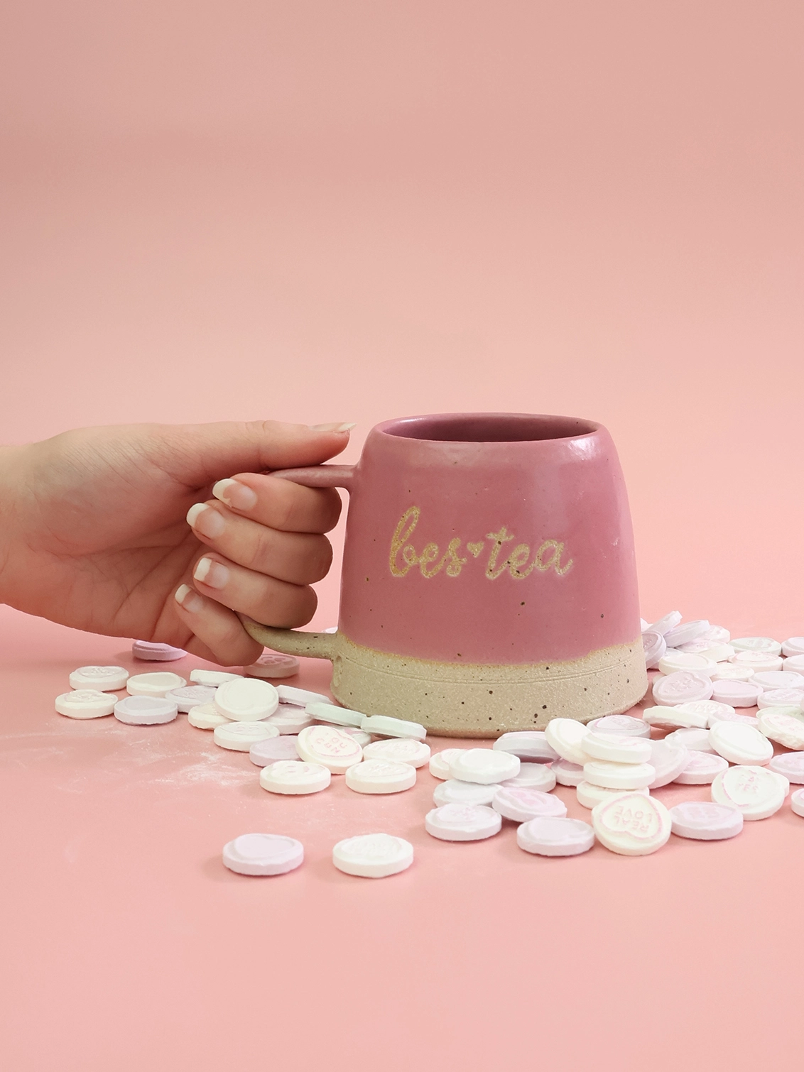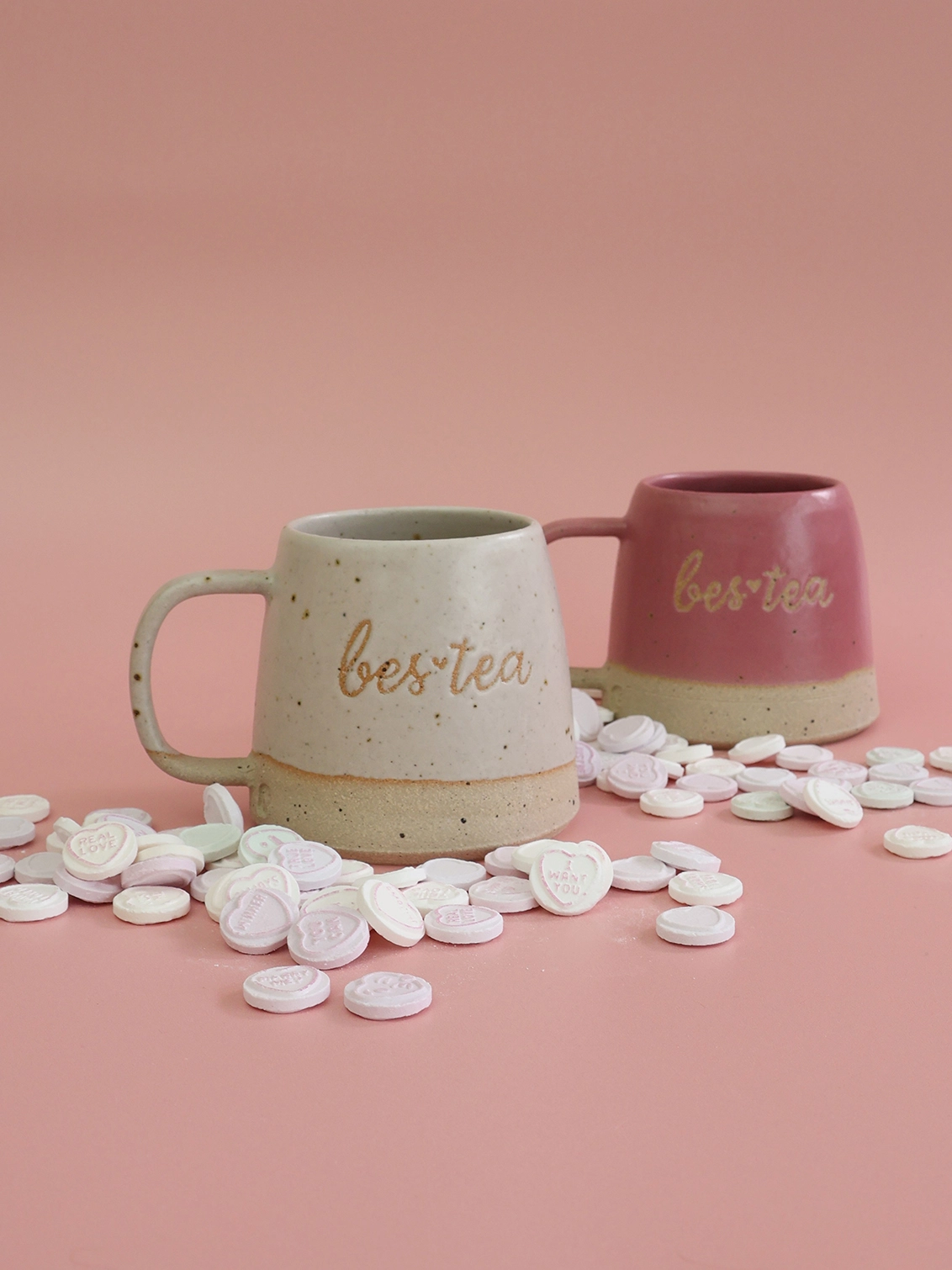 Celebrate your favourite tea loving human with this handmade Bes-Tea mug, a sweet and playful gift for your best friend. Crafted from stoneware clay and finished in your choice of soft white or vibrant fuchsia glaze, each mug is wheel-thrown and one of a...