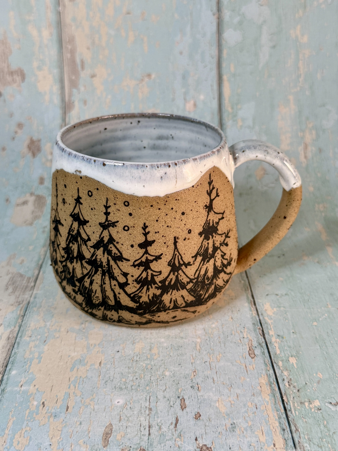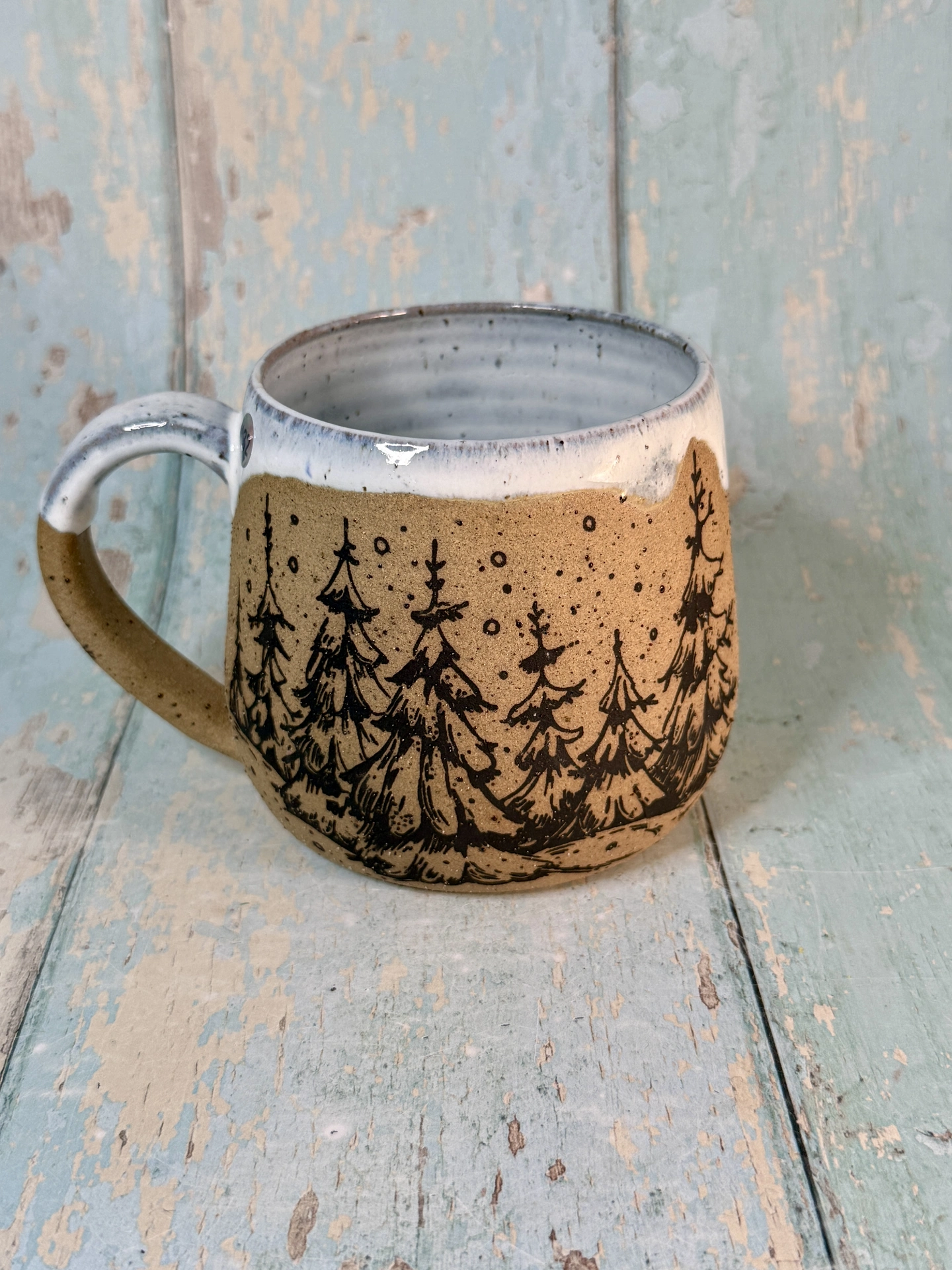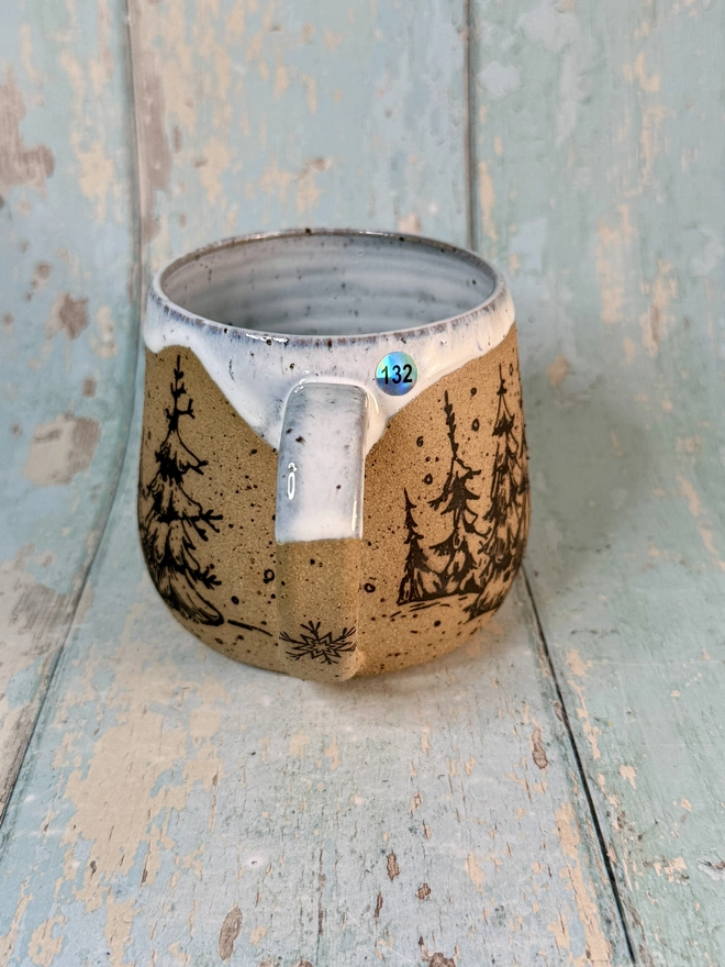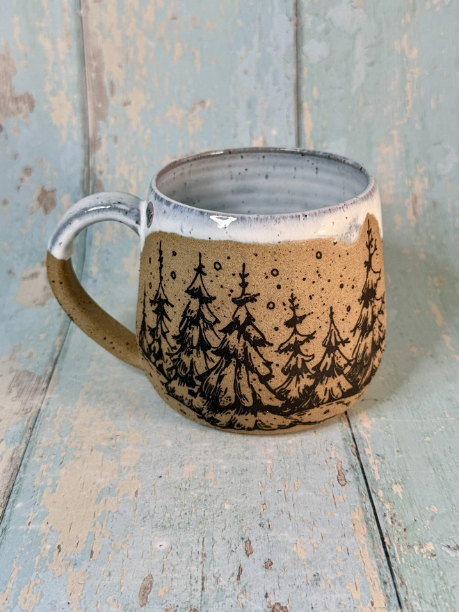 Handmade Black & White Christmas Tree Mug | Ceramic Holiday