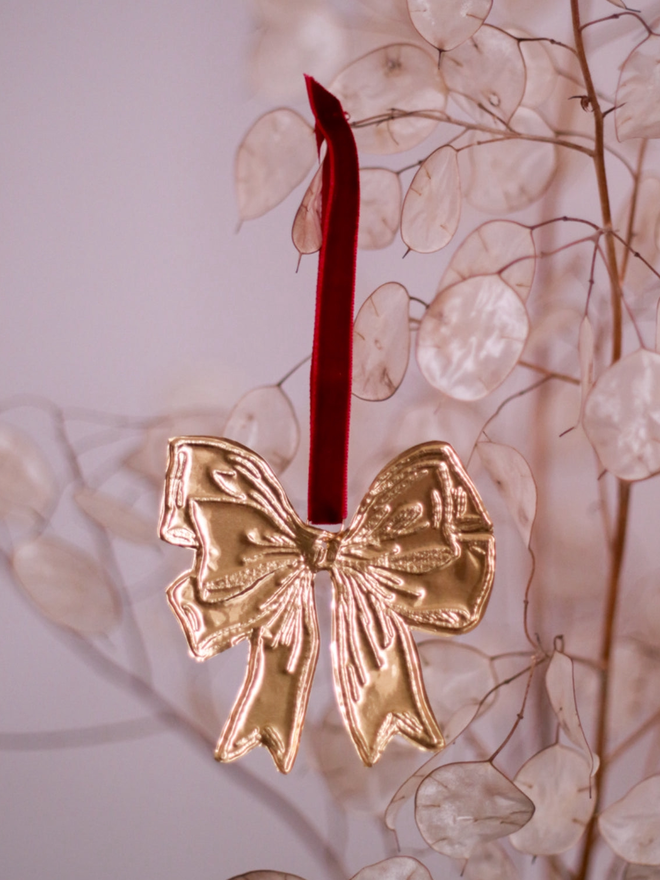 A delicate handmade golden tin decoration with hand-painted enamel details.