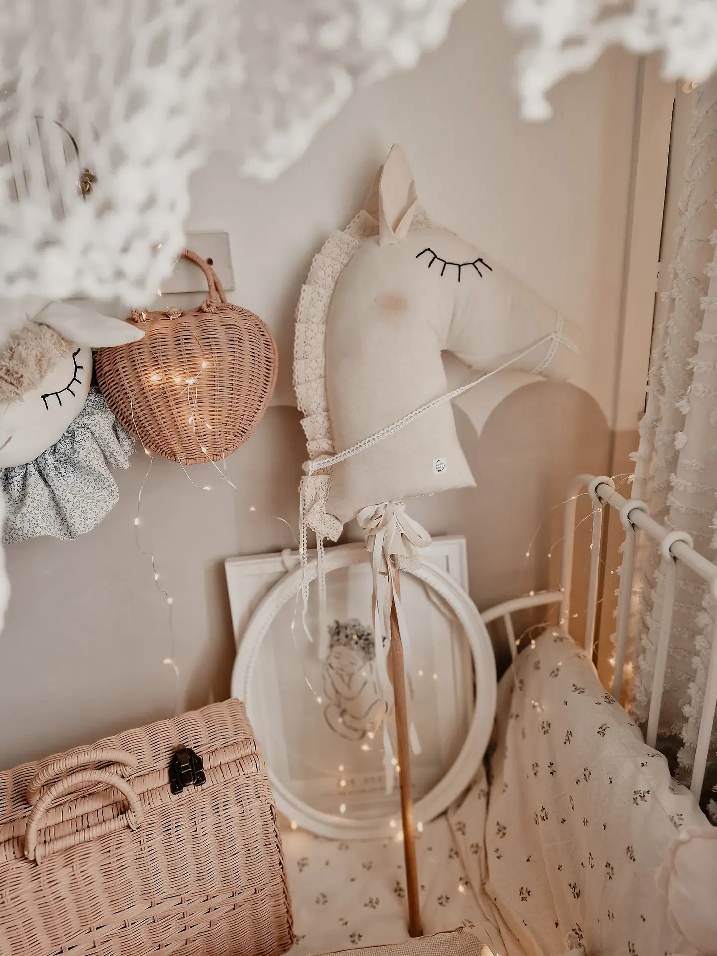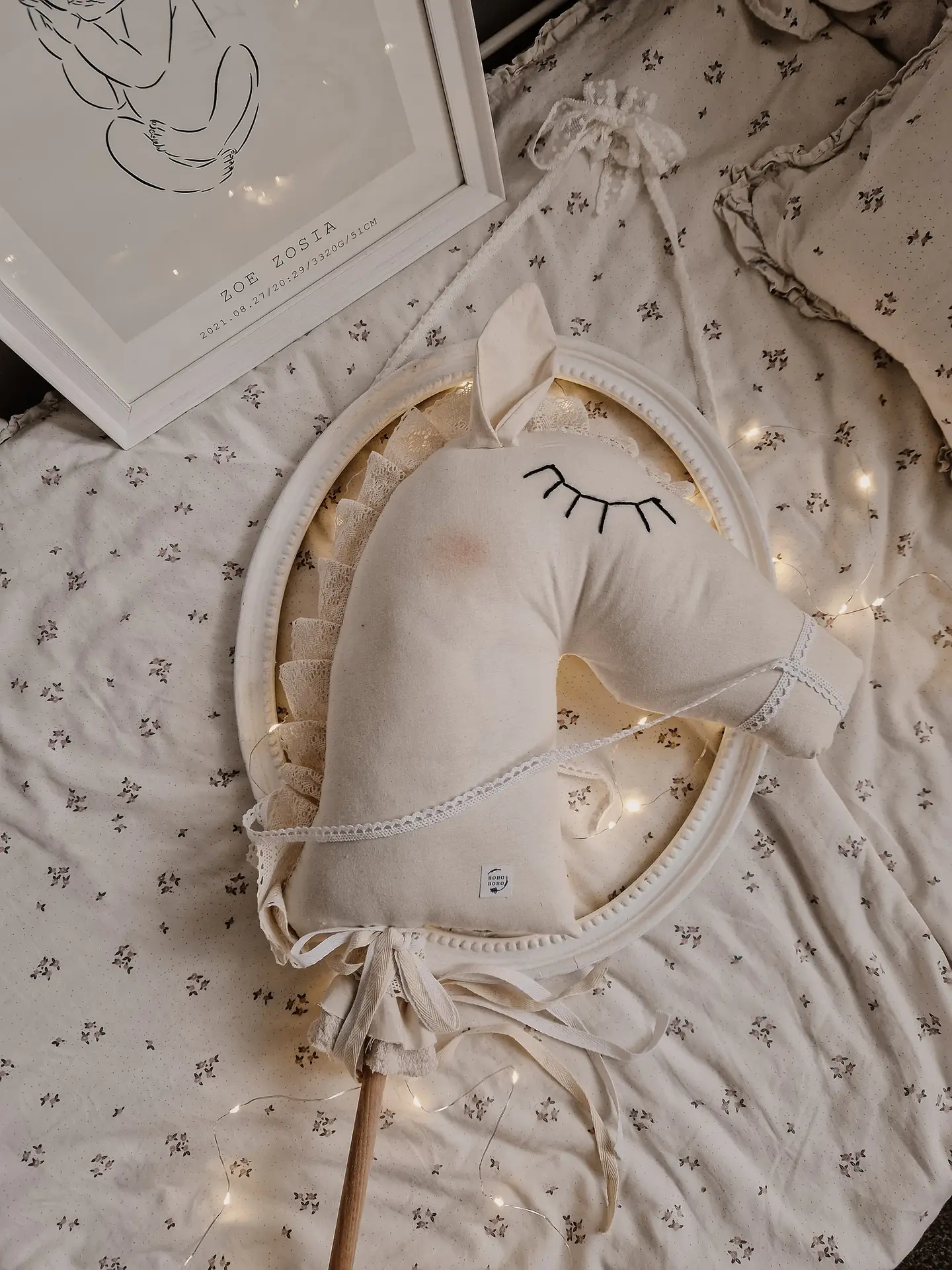 Please note that this Handmade Cotton Hobby Horse Nursery Decoration is more of a decorative product and should be handled with love and care. It is not intended for rough play, but rather for gentle play and display.