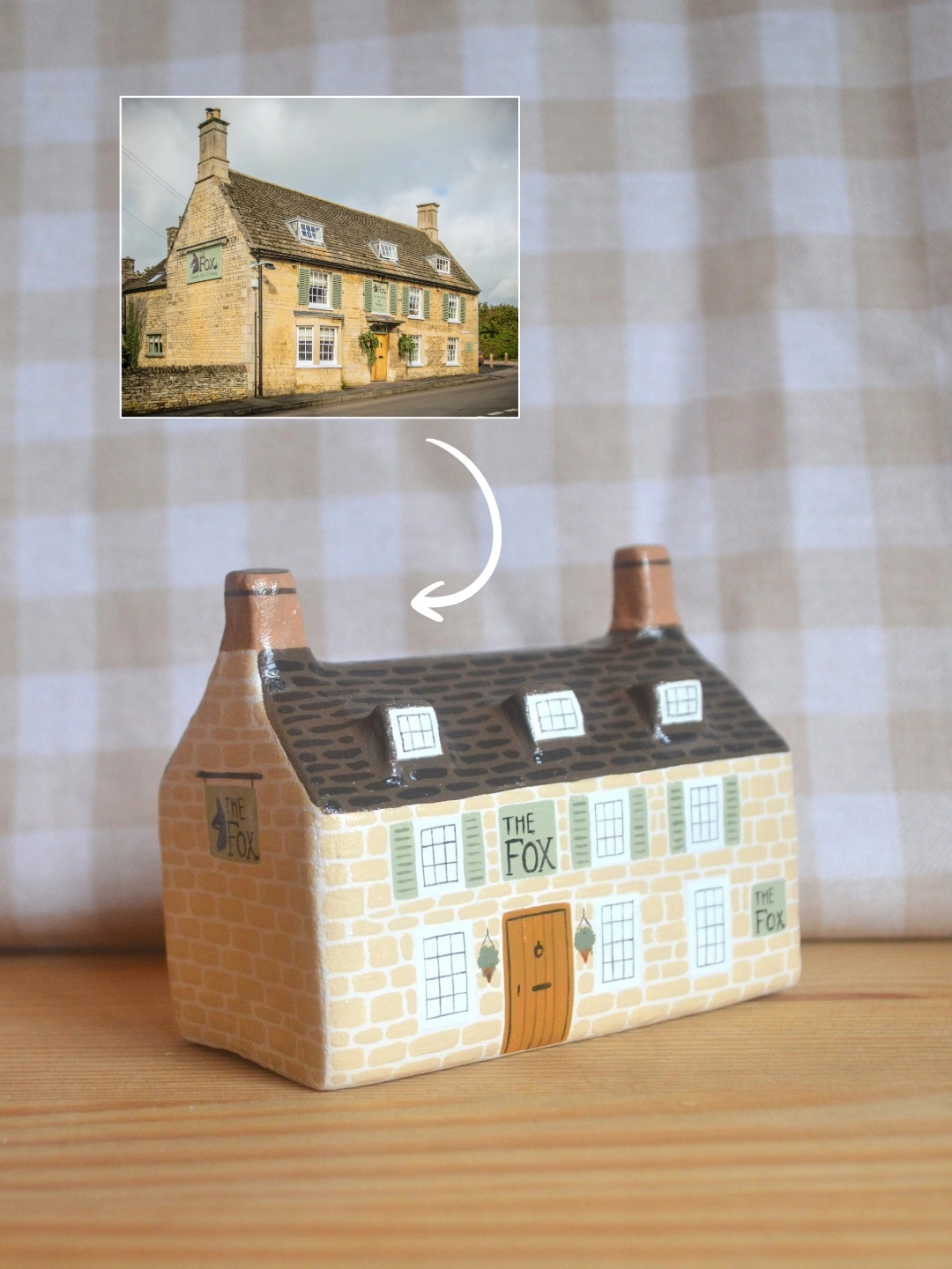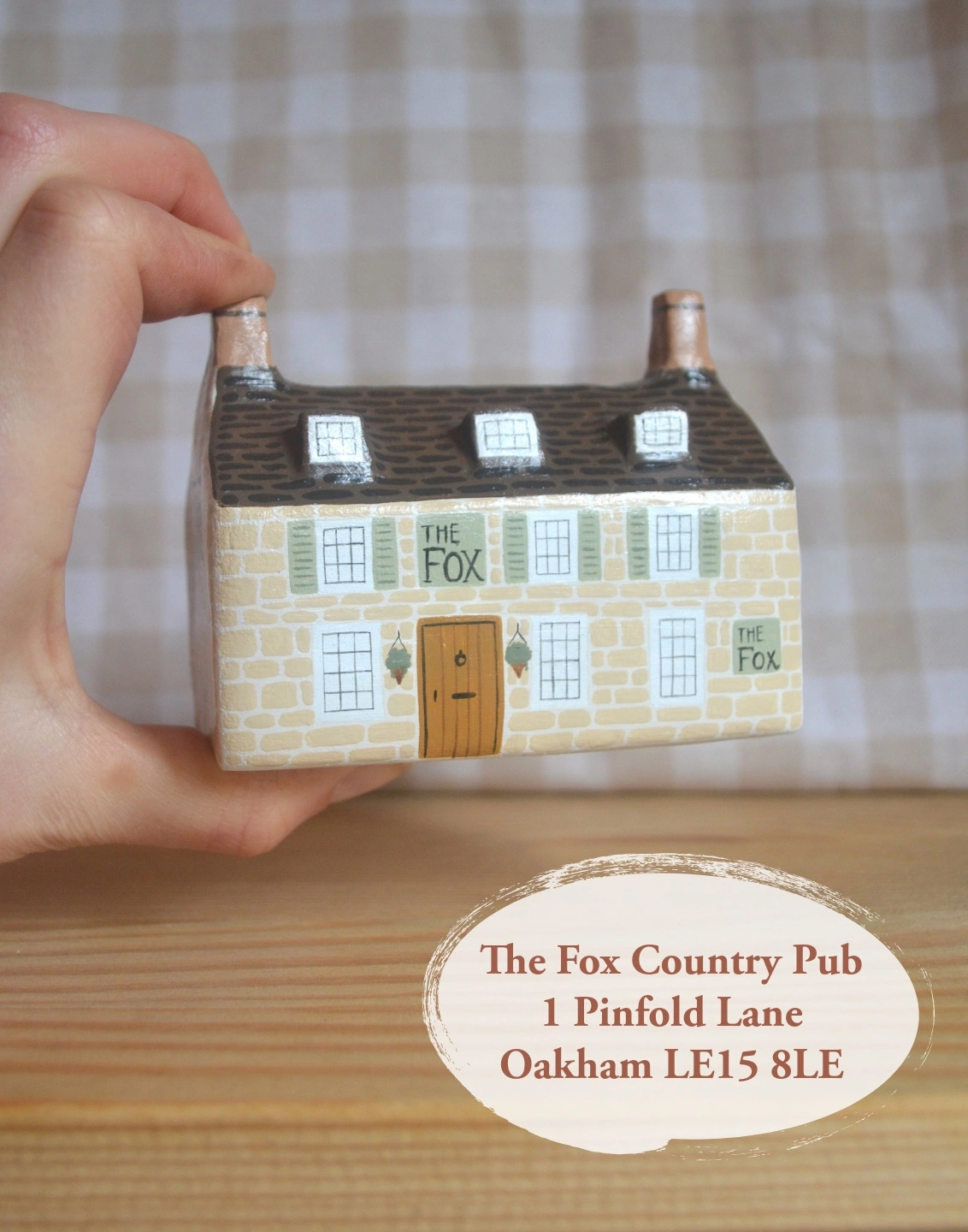 Once the clay has dried, I will then hand paint your mini pub in as much detail as possible using the photograph you send me as a reference. The back of your pub sculpture will have the pub name and address painted on.