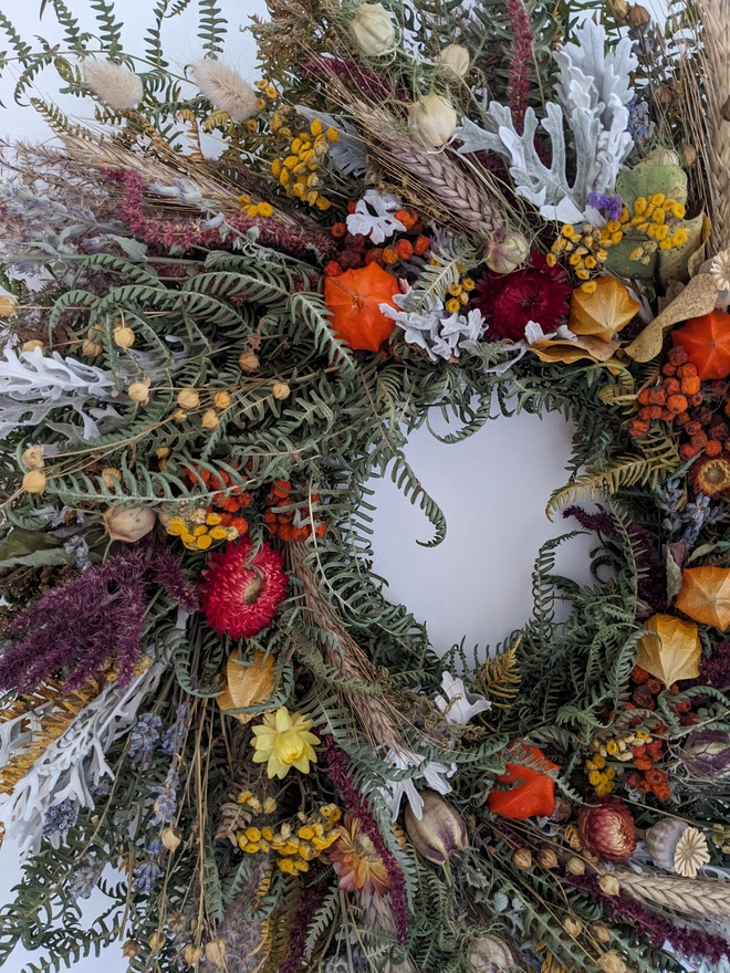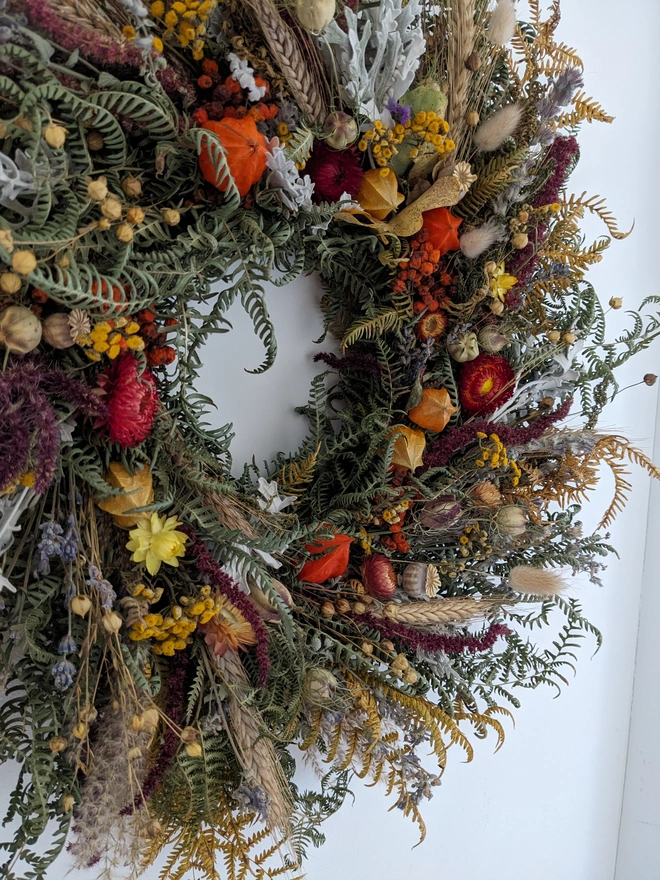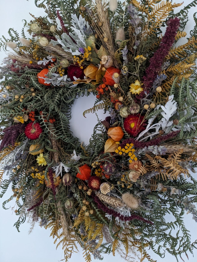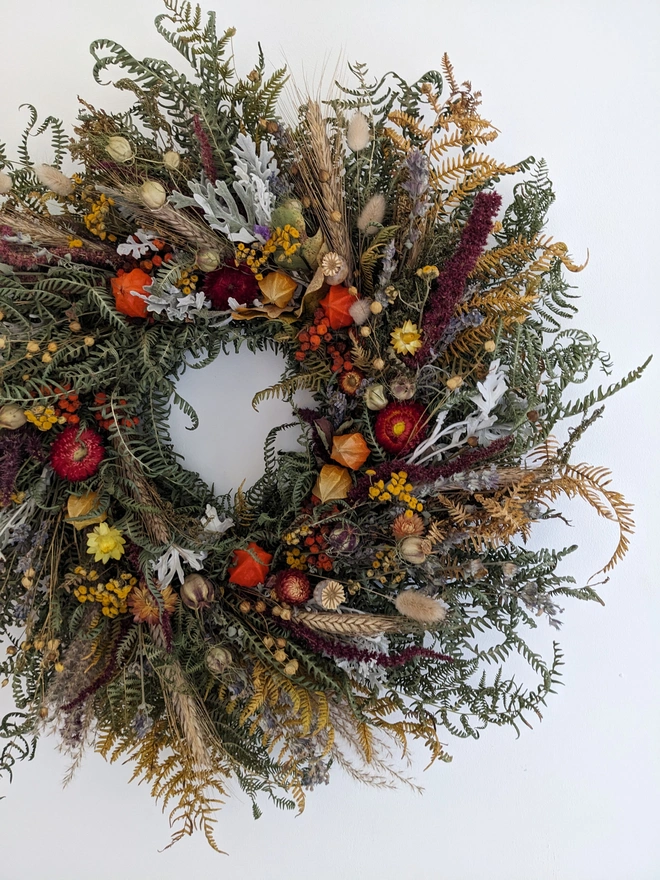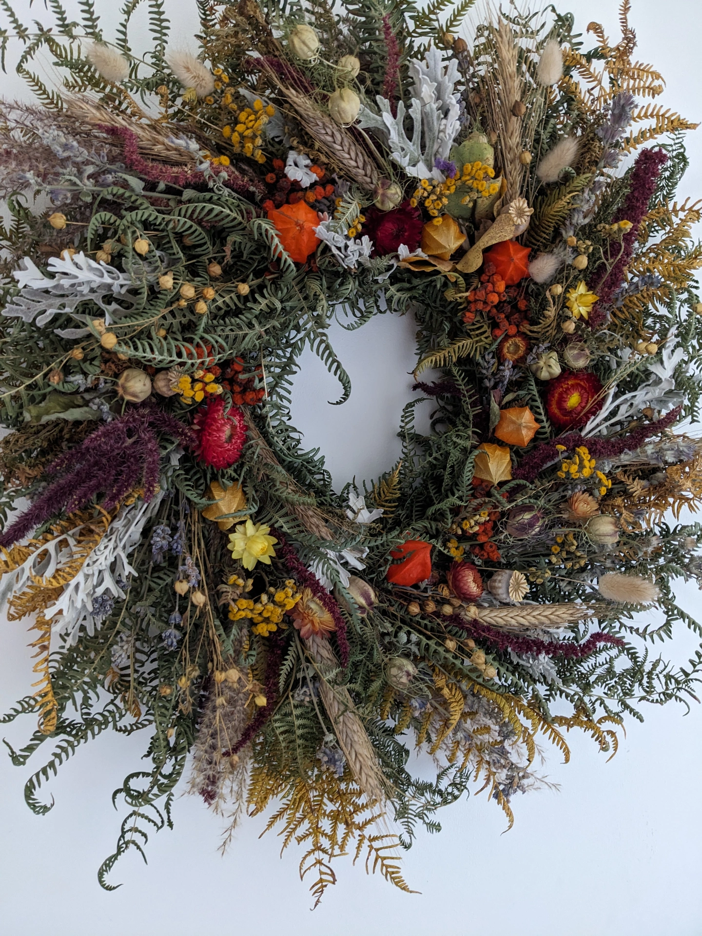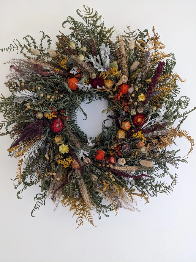 Handmade Dried Everlasting Wreath – Autumnal Colours 50cm
