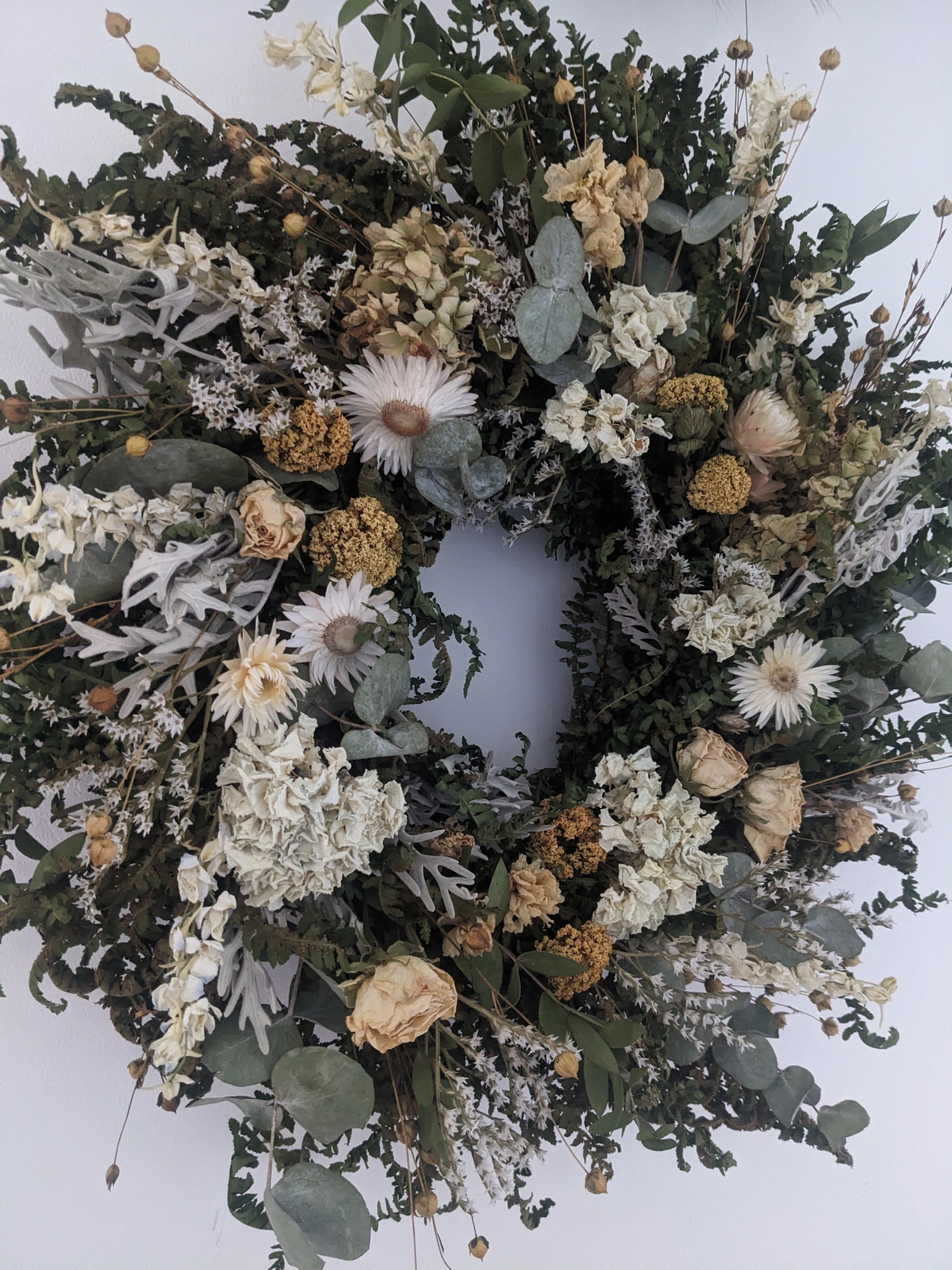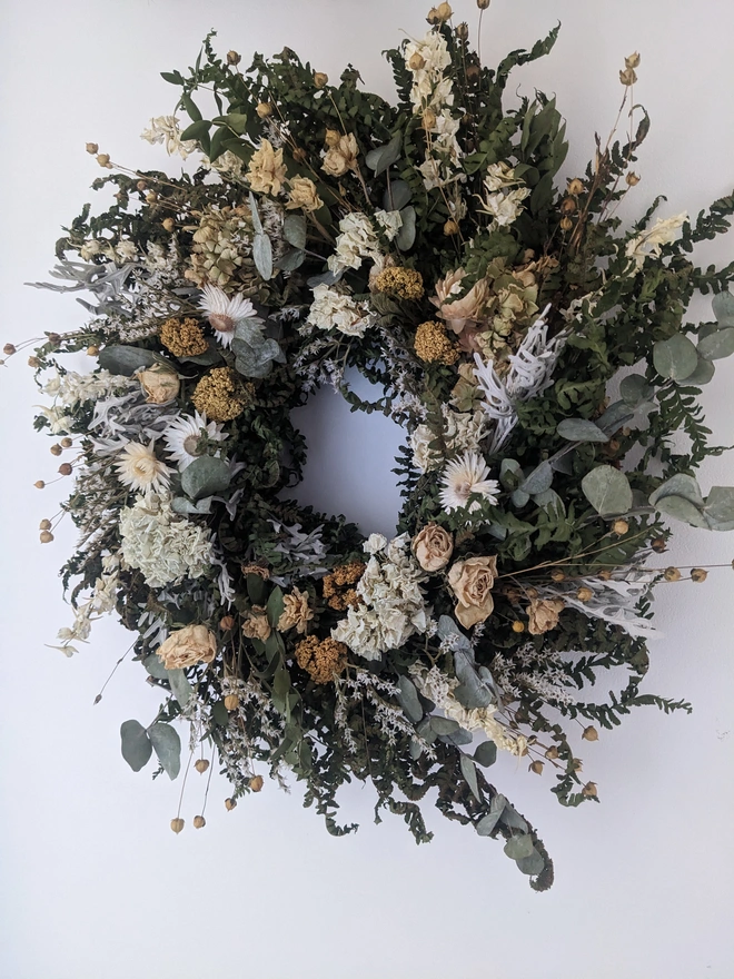 A beautifully balanced wreath in soft, neutral tones — this piece goes with everything.