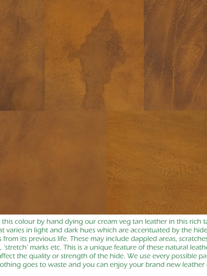NOTE - the tan brown shown in the images is our discontinued colour - our new hand dyed tan brown is a slightly darker hue with dappled colour.