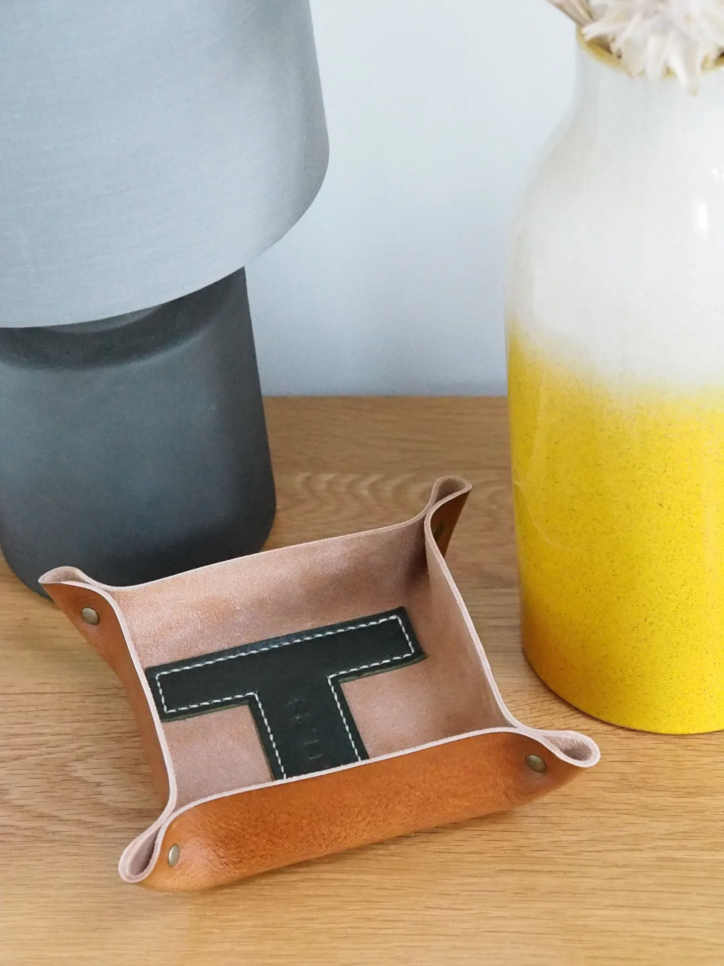 The corners are permanently secured with rivets of your choice. Keep anything you want in our valet trays! From keys, jewellery, USB sticks, spare change, glasses and more! No more searching the house for these day to day items.