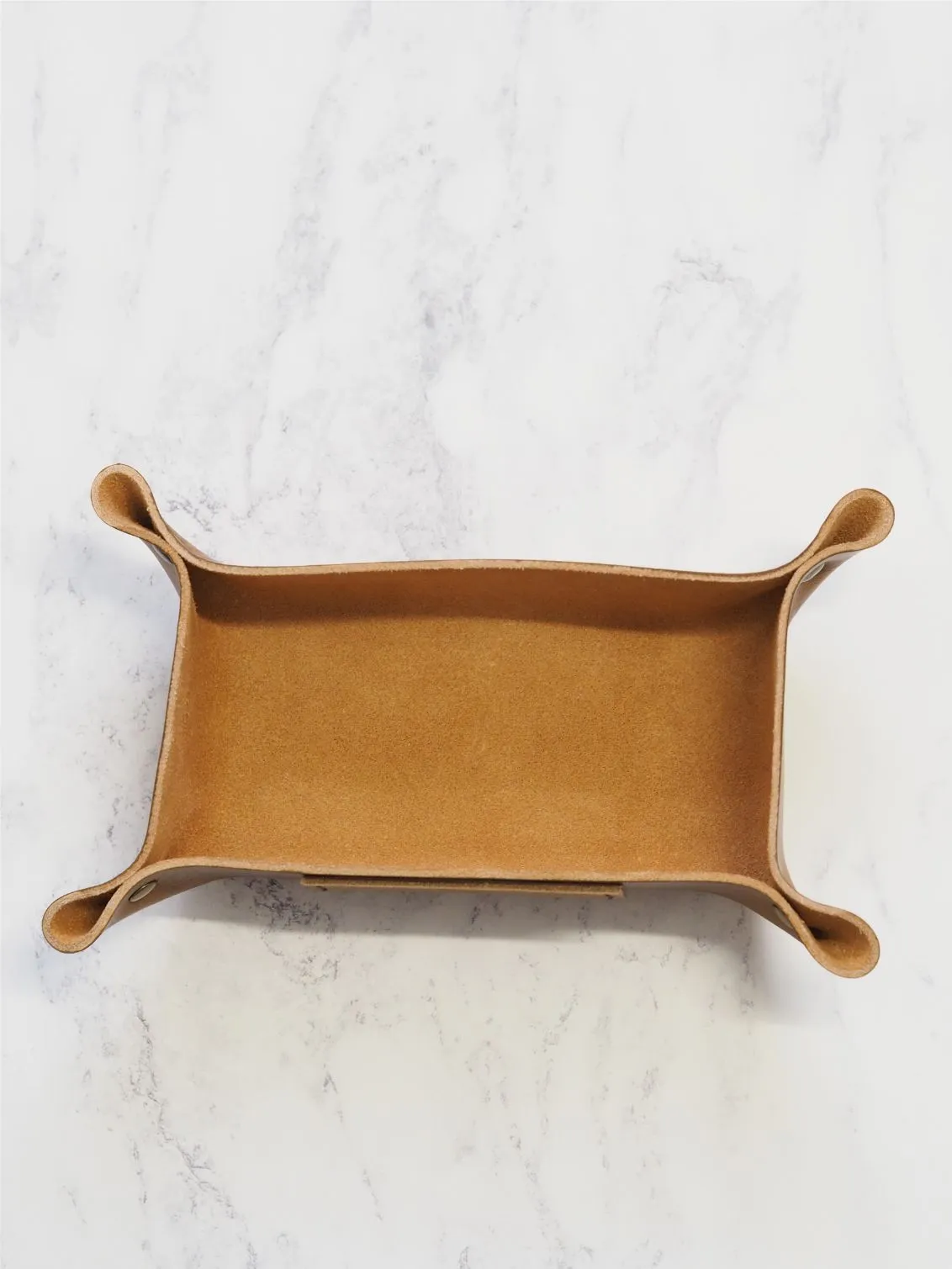 This design shows off the soft suede side of the leather as the inside of your tray helping to protect the items kept in it.