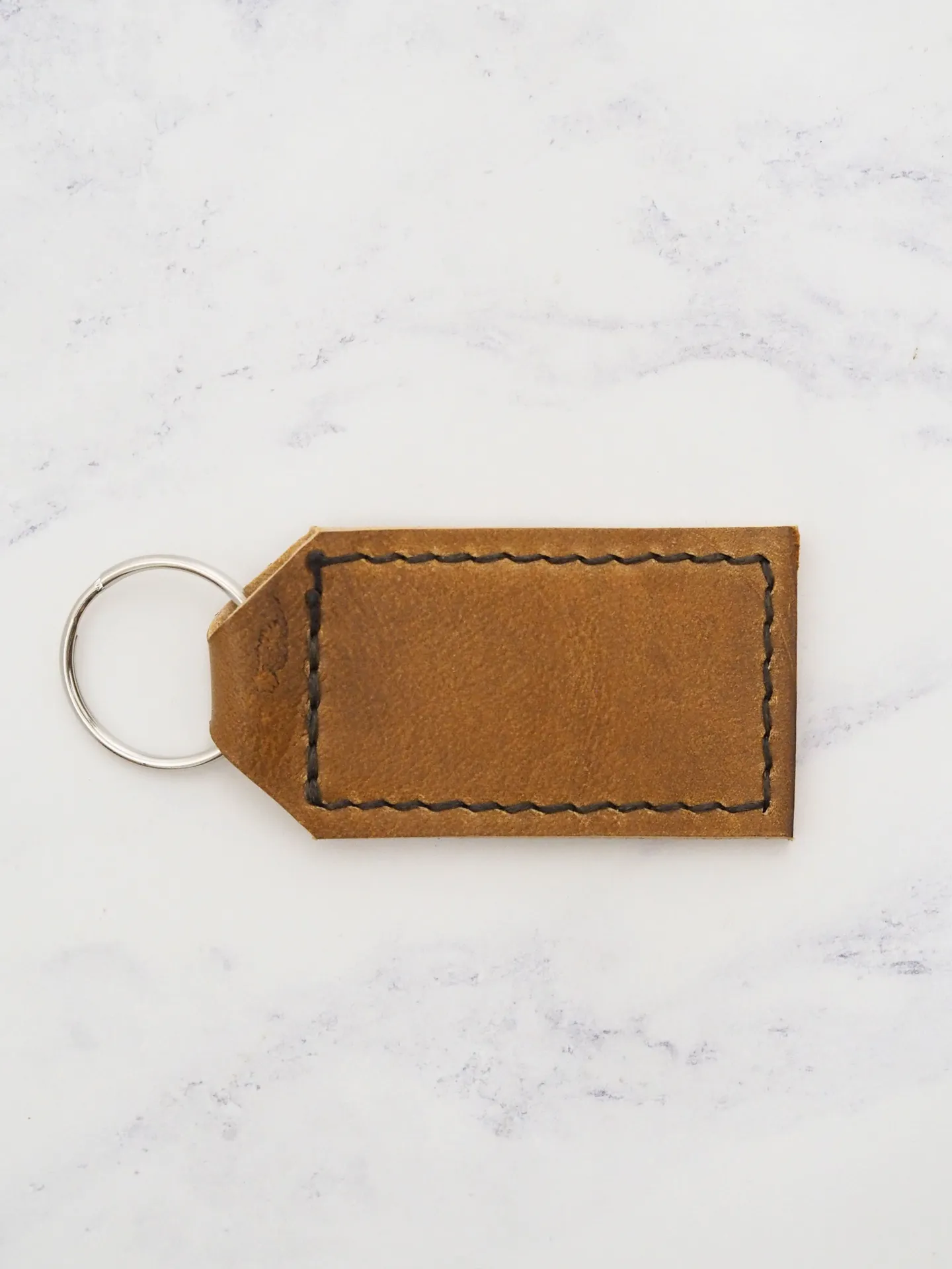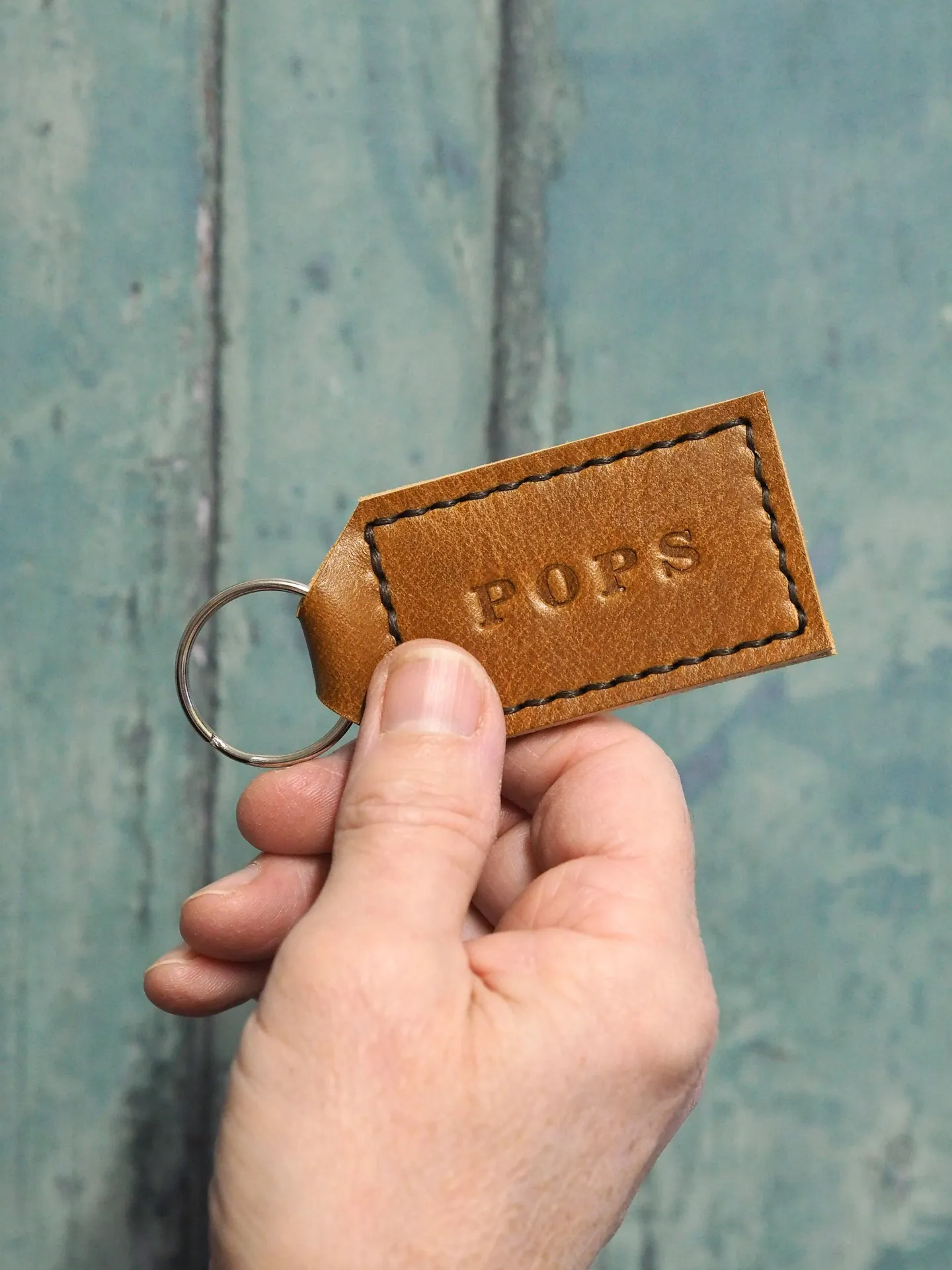The perfect small gift for that difficult to buy for person. Cut in a classic luggage tag design. Stamped by hand to make this gift extra special. Handstitched in our workshop in Derbyshire, finished with a large silver coloured split keying.