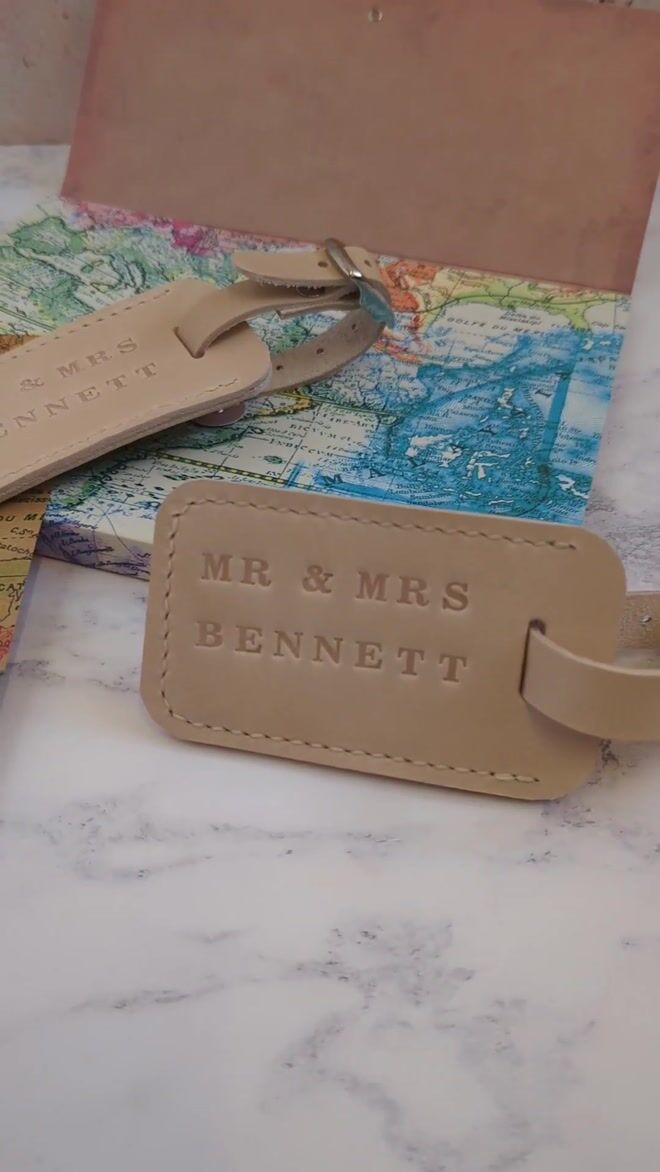 Want to add a personal touch? The tag can be personalised with up to 15 letters (approx. 7 letters per line). Each letter is stamped individually by hand so please note some letters may tilt or be slightly out of line, this is all part of the handmade process and only adds to the character of each travel case! If the text box is left blank you will receive a blank luggage tag. UPPER CASE letters available. The initials/words will be stamped exactly as supplied so check spelling and include any special characters such as . or &. Spacing on the tag will be done as our discretion to best fit the shape.