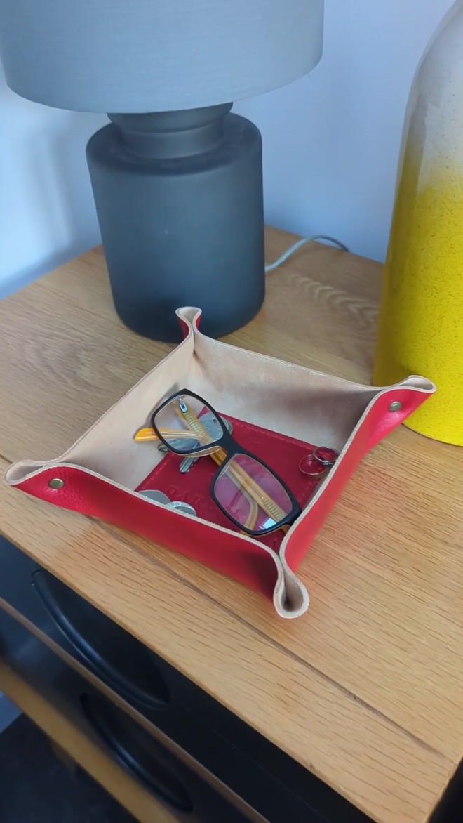 The corners are permanently secured with rivets of your choice. Keep anything you want in our valet trays! From keys, jewellery, USB sticks, spare change, glasses and more! No more searching the house for these day to day items.