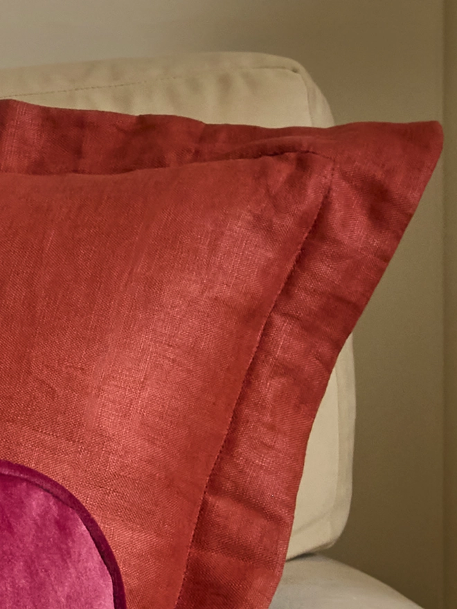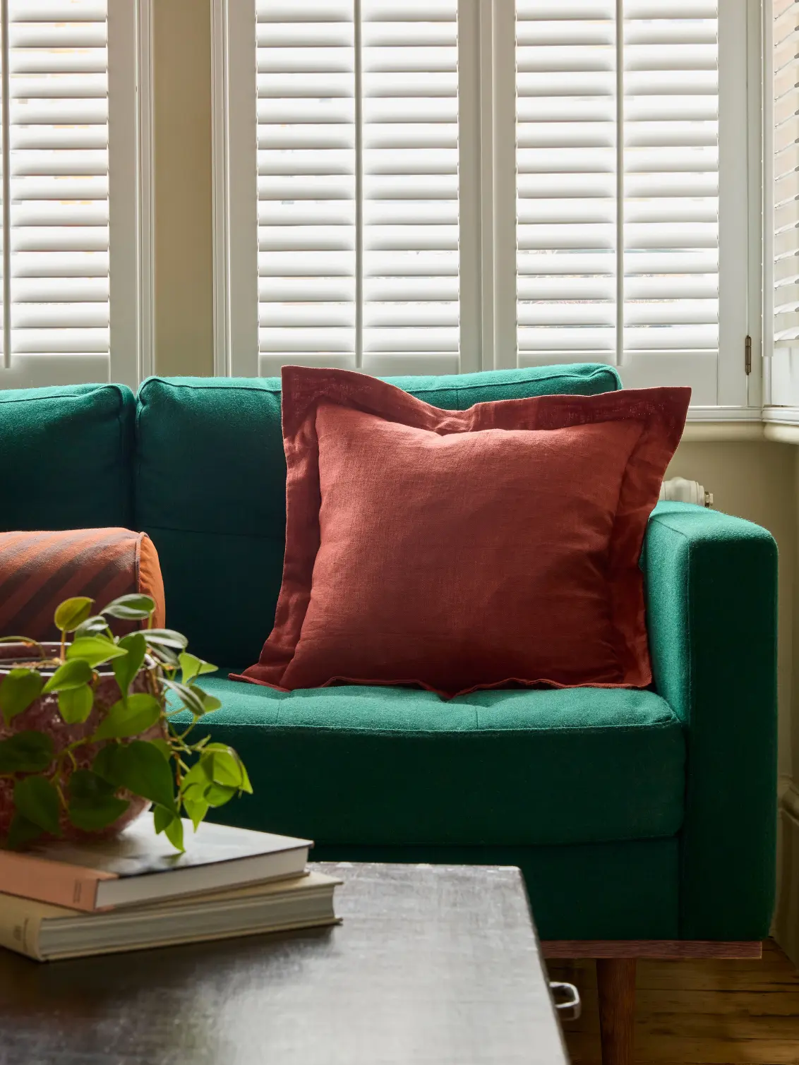 As shown, rust linen pairs beautifully with deep teal, burgundy and jade — see our velvet cushion and bolster range for the perfect companions.