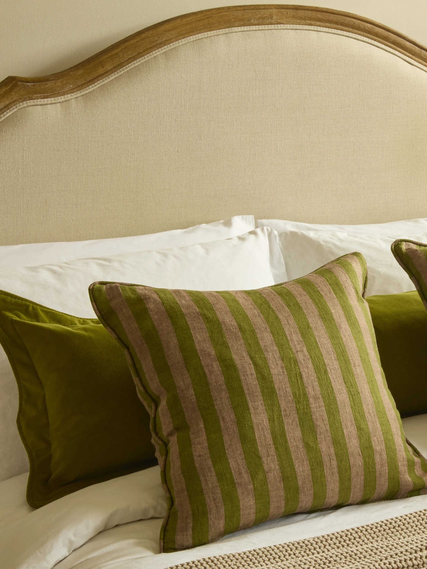 At 130cm it spans a king size bed with room to breathe. Style it alone at the head of the bed above your pillows, or pair it with our ruffled cushions below for a fully dressed, properly considered bed. Pairs beautifully with our stripe linen cushions — as shown.