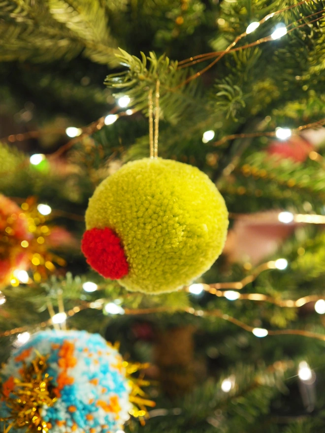 Handmade Olive Pom Pom Bauble Ornament Decoration