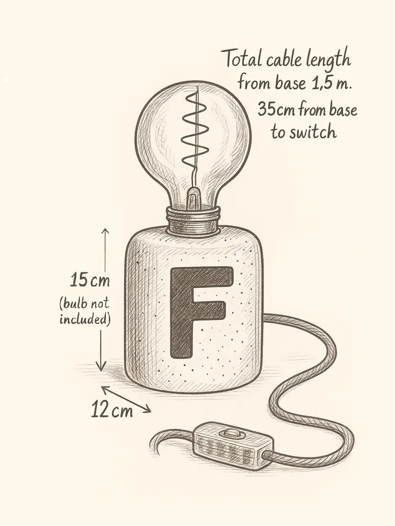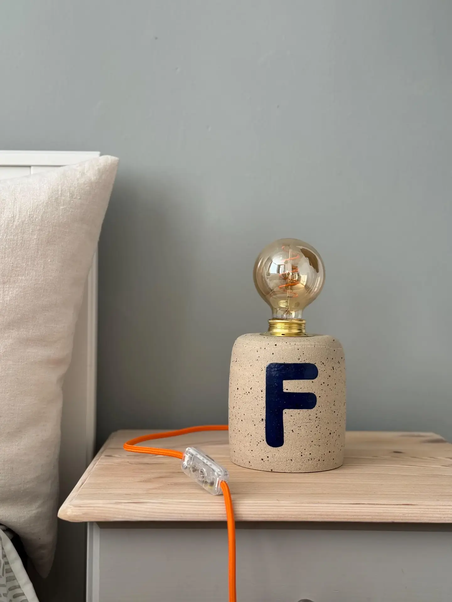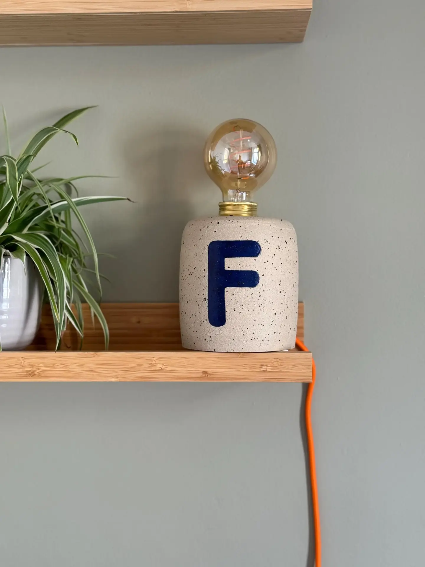 This listing is for a handmade ceramic speckled stoneware table lamp with a coloured cable, which can be personalised with a letter of your choice and added onto the lamp in glaze.