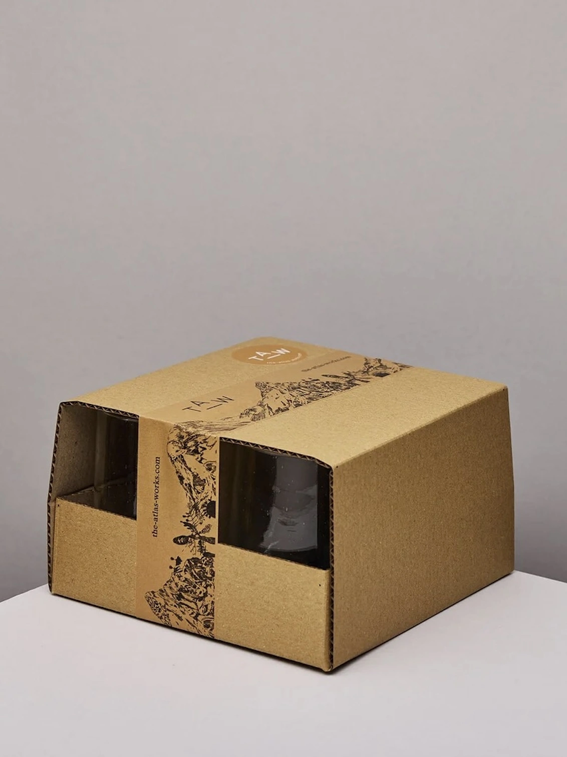 A set of four Tall Wine Glasses, a contemporary take on the classic French wine tumbler. Our glass has been specifically designed to fit elegantly in the hand, and stack neatly for storage...