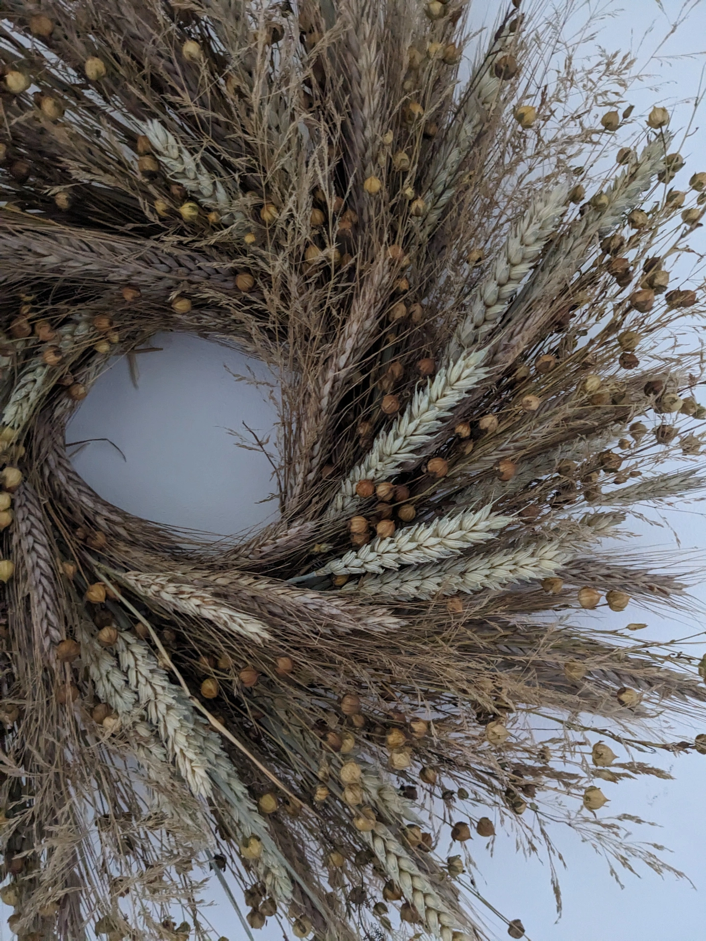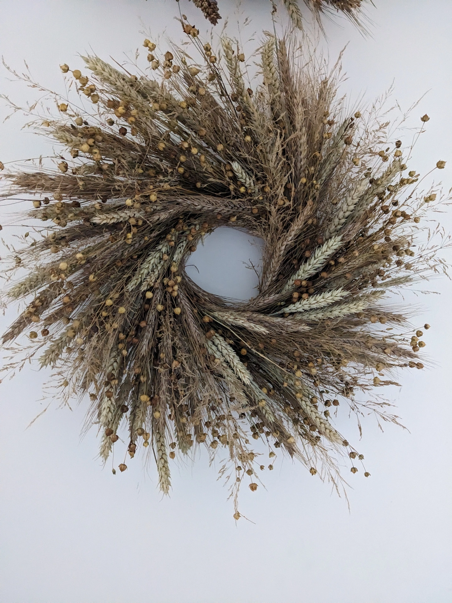 Handmade Wreath from Flax , Wheat And Foraged Grass