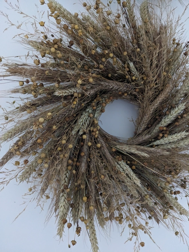 Handmade Wreath from Flax , Wheat And Foraged Grass, – 50cm
