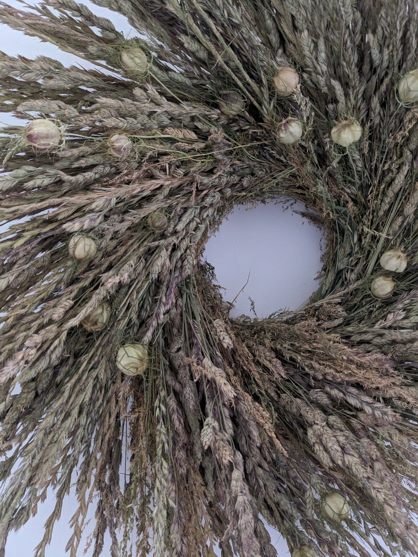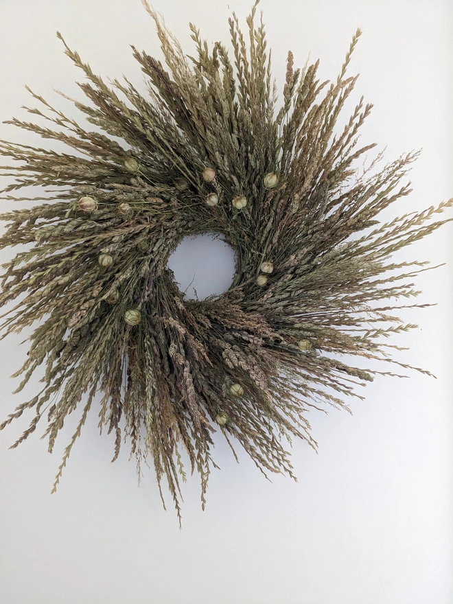 A beautifully handmade wreath crafted from foraged grasses, gathered from the West Sussex countryside. Each stem is naturally dried, creating soft textures and earthy tones that bring a touch of wild, natural beauty to your home.